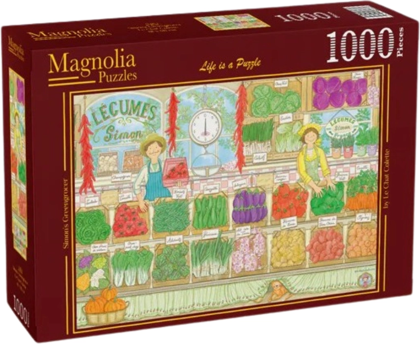 Uživajte u opuštanju i zabavi s prekrasnim motivom Simonove trgovine povrćem brenda MAGNOLIA. Ova kvalitetna slagalica od 1000 dijelova nudi detaljnu ilustraciju punu boja i atmosfere tradicionalne prodavaonice. Nakon slaganja nastaje slika dimenzija cca 68 × 48 cm, idealna za uokvirivanje i izlaganje.