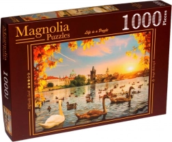 Elegantna slagalica s praškim motivom razveselit će svakog ljubitelja glavnog grada i mirnog odmora. Zahvaljujući 1000 precizno izrezanih dijelova pruža ugodan izazov i početnicima i naprednim slagateljima. Nakon slaganja dobit ćete dojmljivu sliku labudova kod KARLOVA MOSTA, koja je izvrsna kao dekoracija.