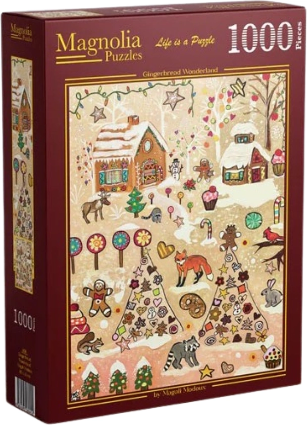 Otkrijte čaroliju slaganja s ovim kvalitetnim puzzleom od 1000 dijelova s motivom Gingerbread zemlje čudesa. Idealno za opuštanje i razvoj strpljenja, s gotovom slikom dimenzija 48 × 68 cm.
