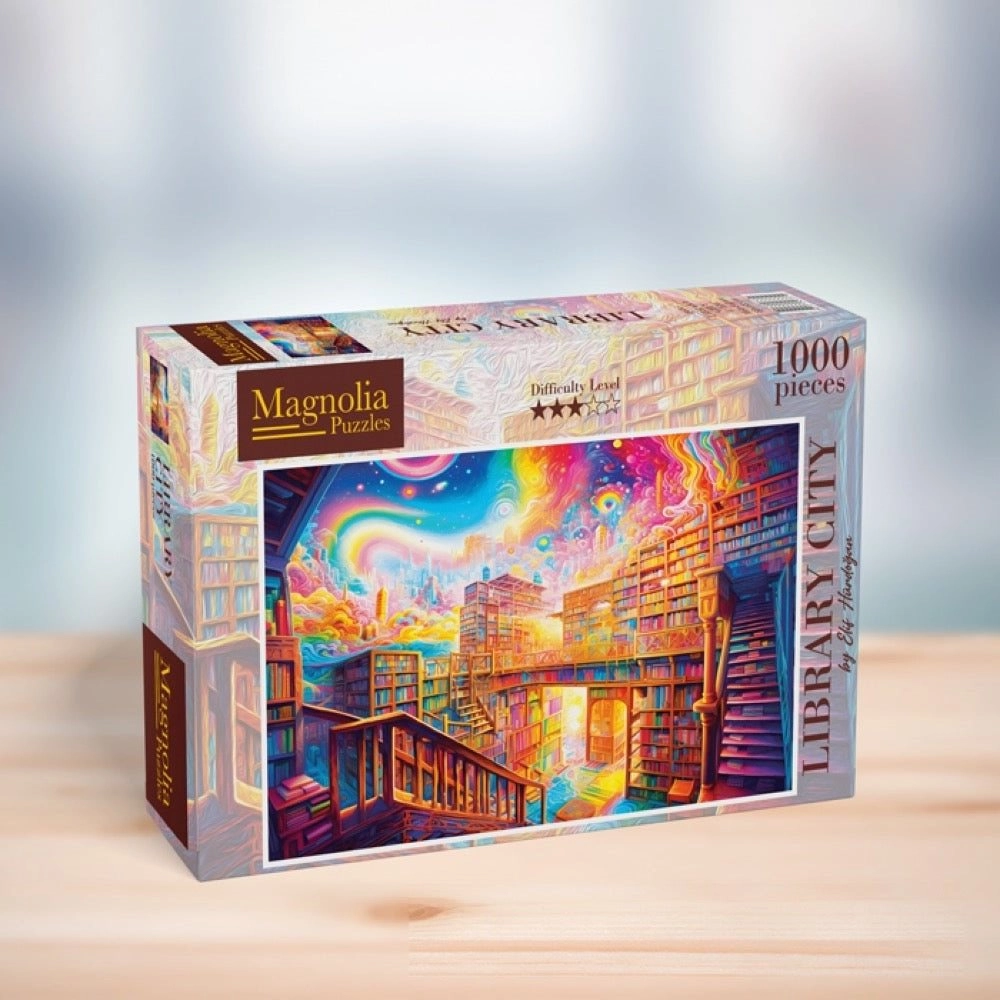 Uronite u fantaziju „Grada knjiga“ i prepustite se tisući pažljivo izrezanih dijelova. Puzzle je odličan izbor za obiteljske večeri, razvoj koncentracije te kao dekoracija nakon lijepljenja. Kvalitetan tisak donosi žive boje i fine detalje koji dolaze do izražaja nakon dovršetka.