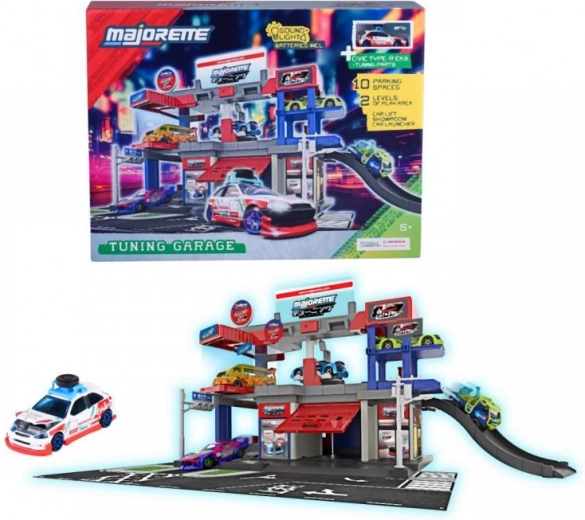 Otkrijte zabavu punu automobilističkih doživljaja s garažom JDM Legends od Majorette. Dvokatni centar za igru nudi ručno upravljani dizalo, svjetlosne i zvučne efekte, benzinsku postaju, podiznu platformu, tuning zonu i do 10 parkirnih mjesta. U kompletu je jedno metalno autiće duljine 7,5 cm.