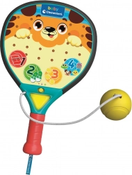 Dio kompleta je meka gumena loptica koju je elastičnom gumicom lako pričvrstiti za reket – djeca tako mogu vježbati udarce bez rizika od gubitka loptice te prirodno razvijati koordinaciju i spretnost. Interaktivni načini rada s pjesmicama i brojalicama obogatit će svaku igru i podržati razvoj govora i osjećaja za ritam.