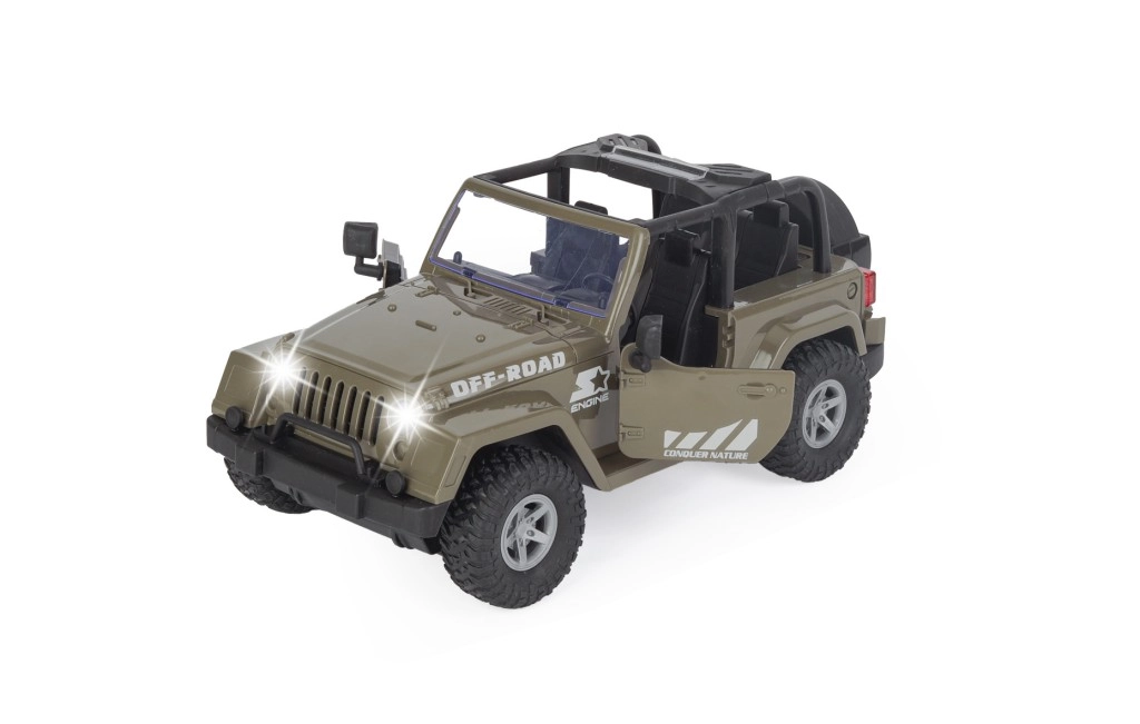 Uživajte u pravoj vožnji s džipom koji osvaja na prvi pogled. U mjerilu 1:10 nudi realistične proporcije, detaljnu izradu i izdržljivo izvedenje pogodno za igru u kući i na otvorenom. Integrirani svjetlosni i zvučni efekti pojačavaju atmosferu i pretvaraju svaku vožnju u pravu avanturu.