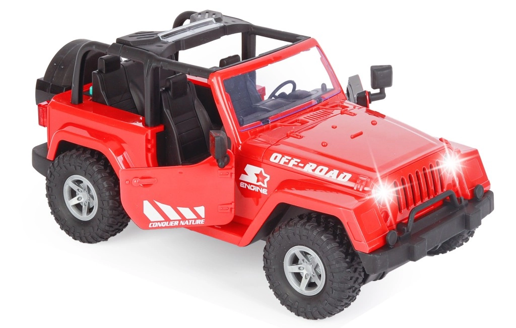 Krenite u avanturu s ovim detaljno izrađenim džipom u mjerilu 1:10. Robusna konstrukcija, svjetlosni i zvučni efekti te realističan dizajn dodaju svakoj vožnji dozu akcije. Dostupan u tri varijante boja, idealan za djecu i kolekcionare modela automobila.