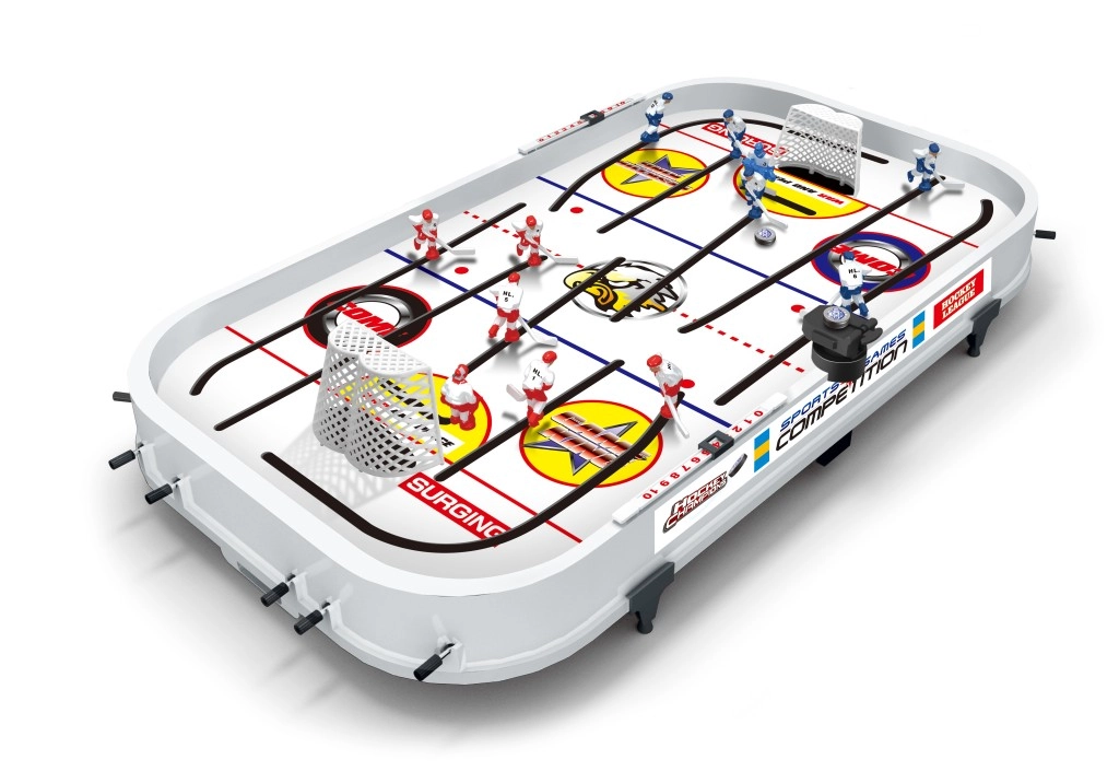 Stolni hokej na ledu donosi dinamičnu akciju i realistične okršaje u svaki dnevni boravak. Zahvaljujući robusnoj konstrukciji, glatkoj površini i preciznom vođenju igrača uživat ćete u tečnoj igri i poštenim mečevima. Upravljanje polugama je intuitivno i savladat će ga i djeca i odrasli.