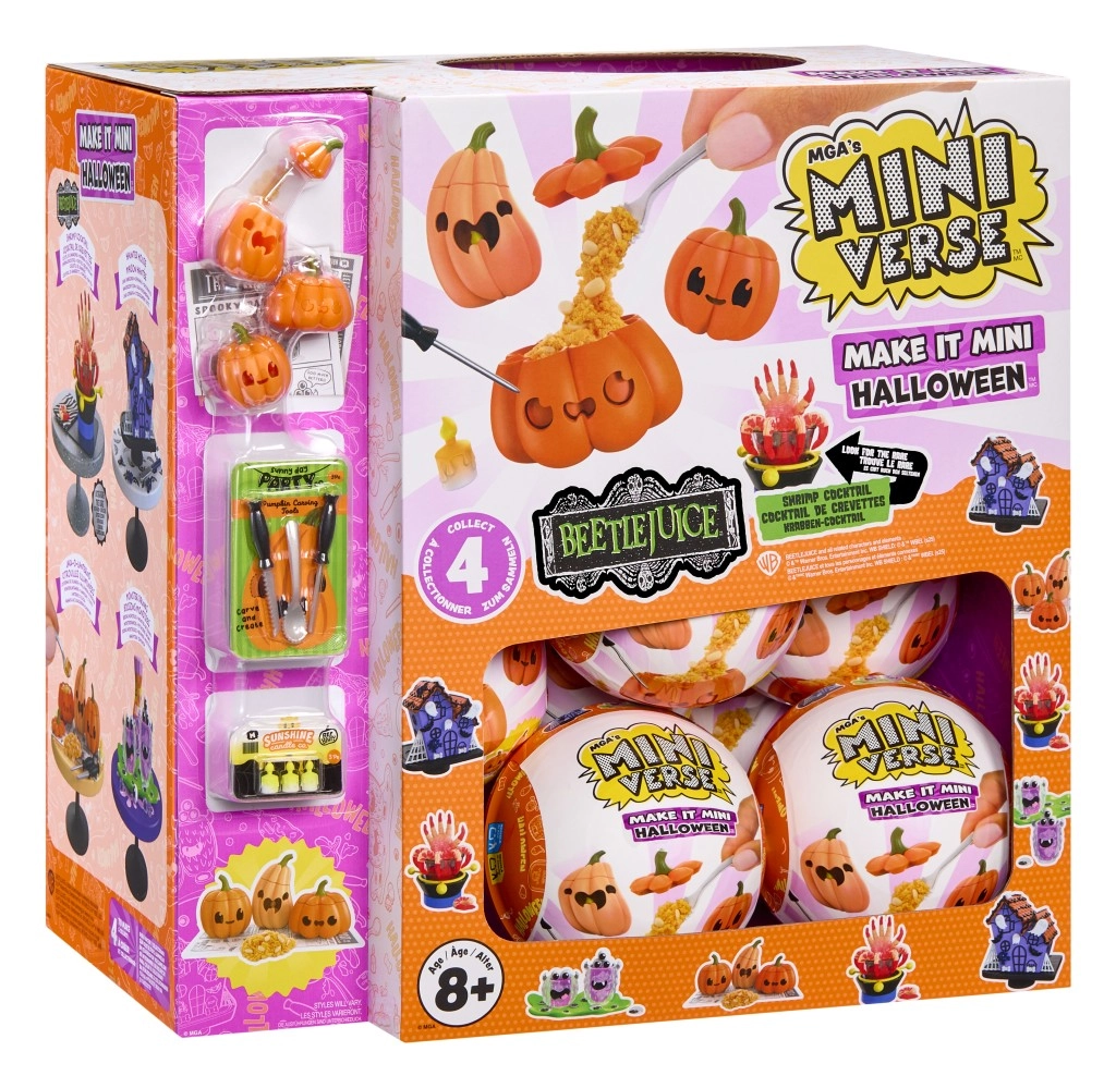 Svaka okrugla kapsula MINI VERSE je zapečaćena, tako da nikad ne znaš koji ćeš strašni set dobiti – bundeve, napitke, dekoracije i još mnogo toga.