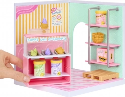 Otkrij svijet minijatura s kolekcijom MGA’s Mini Verse Make It Mini Spaces – kapsule pune iznenađenja koje ti pomažu stvoriti i izložiti tvoje minijaturne scene. U svakom pakiranju naći ćeš razne dijelove namještaja i dodatke za tematske prostore poput slastičarnice sa sladoledom, pekarnice, salat bara ili zamrzivačke vitrine. Zahvaljujući modularnim policama, stogivim stalkovima i detaljnim dodacima lako ćeš kreirati originalne mini kutke za igru i izlaganje.