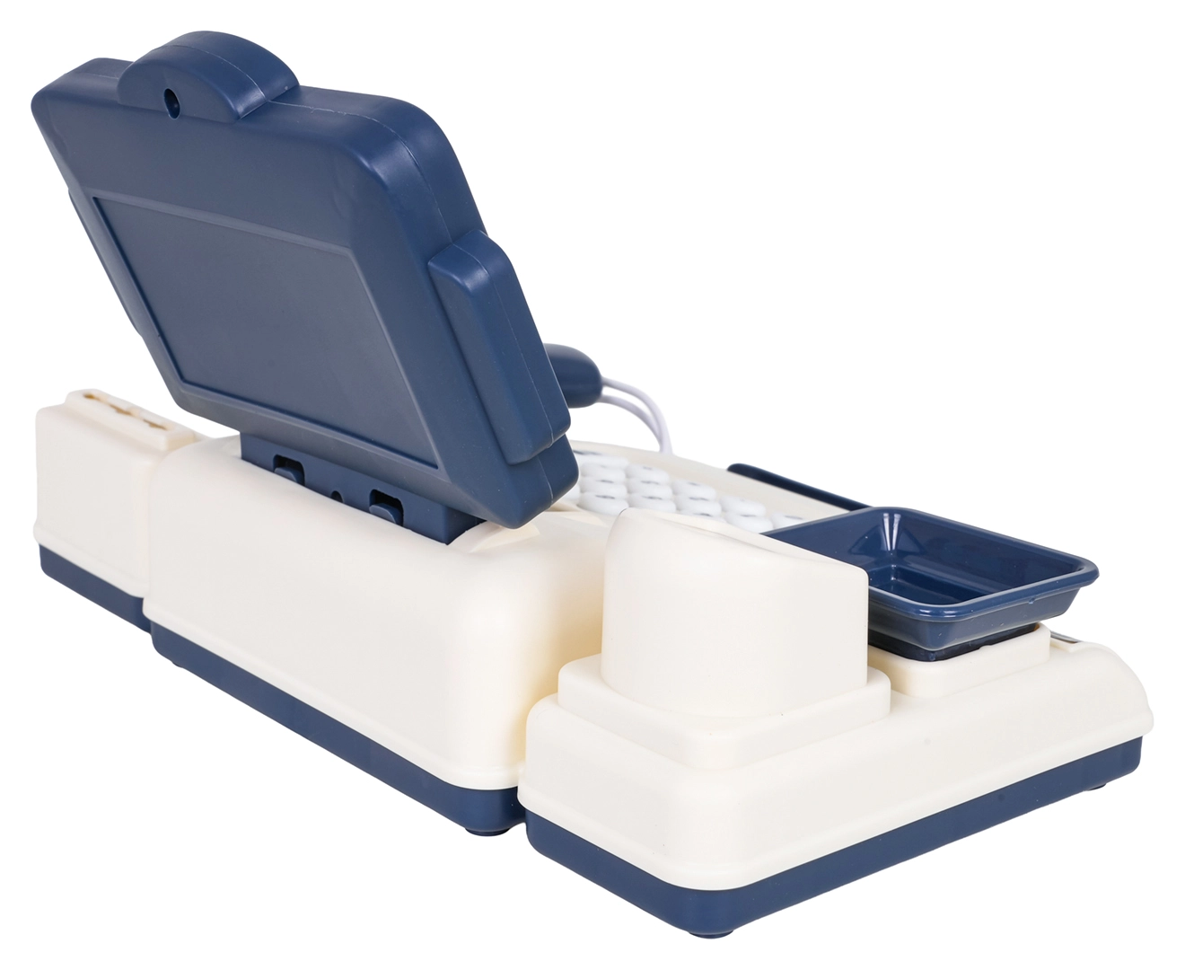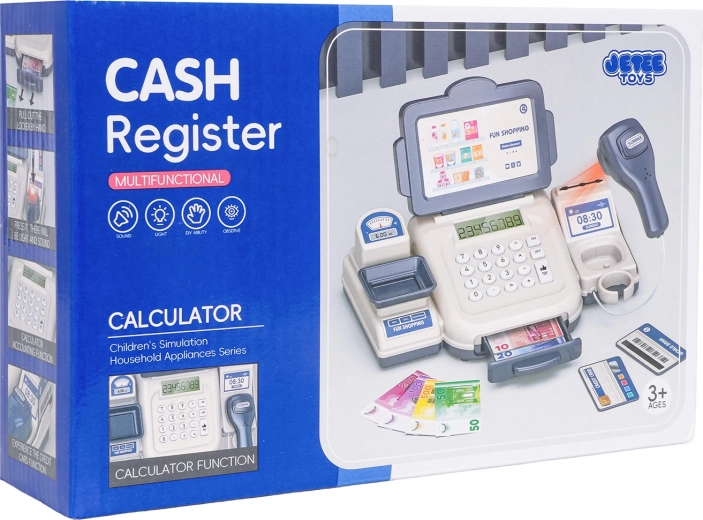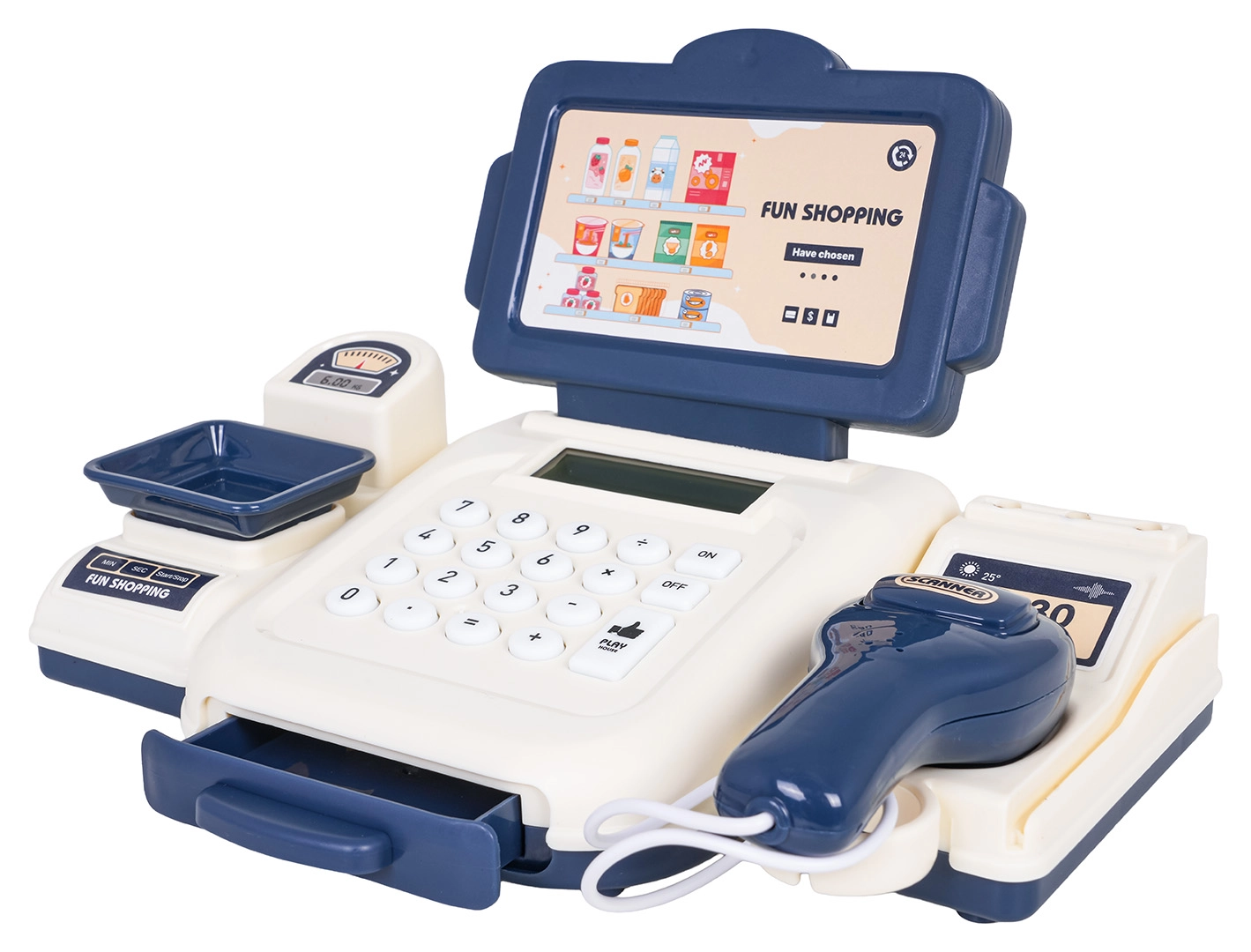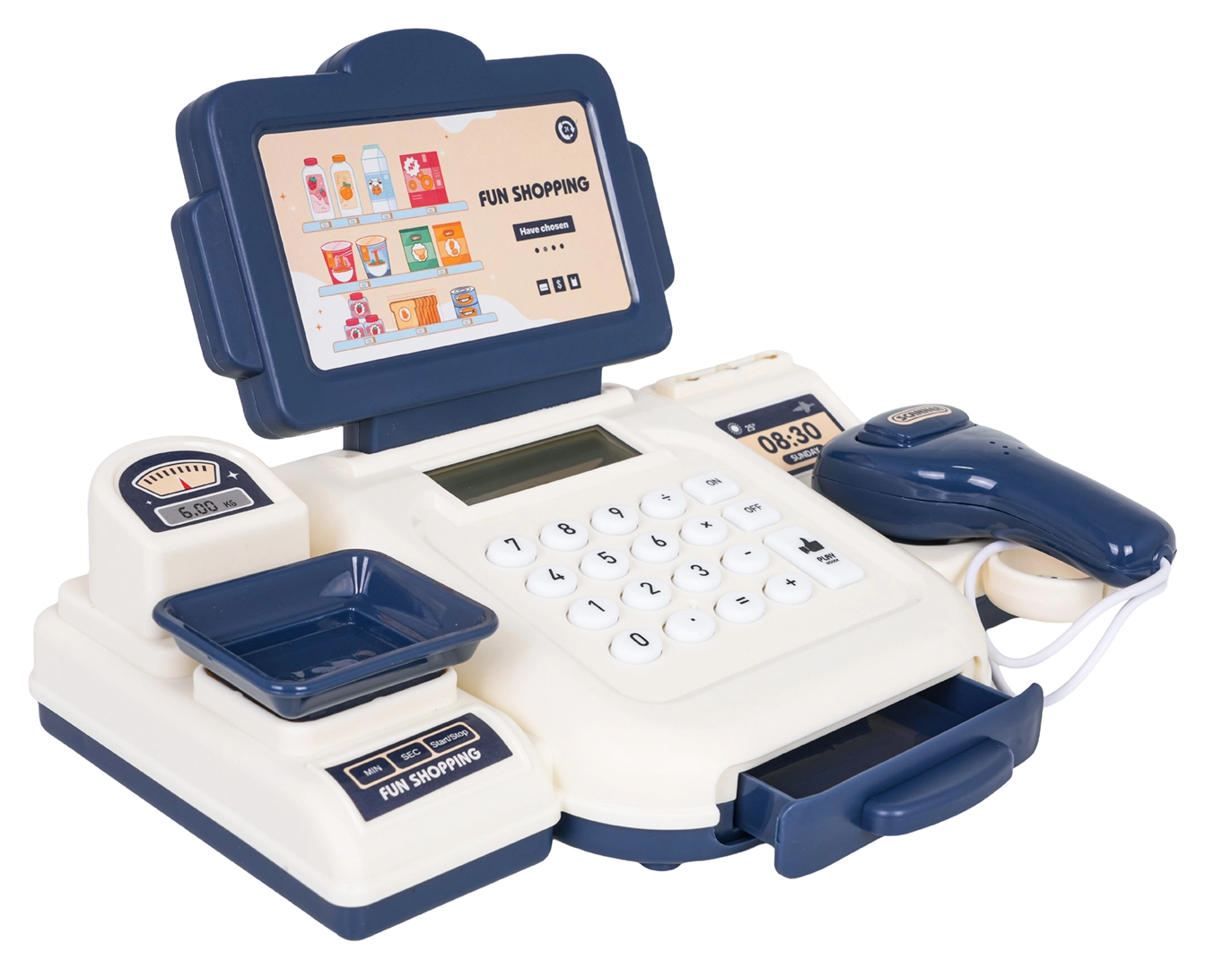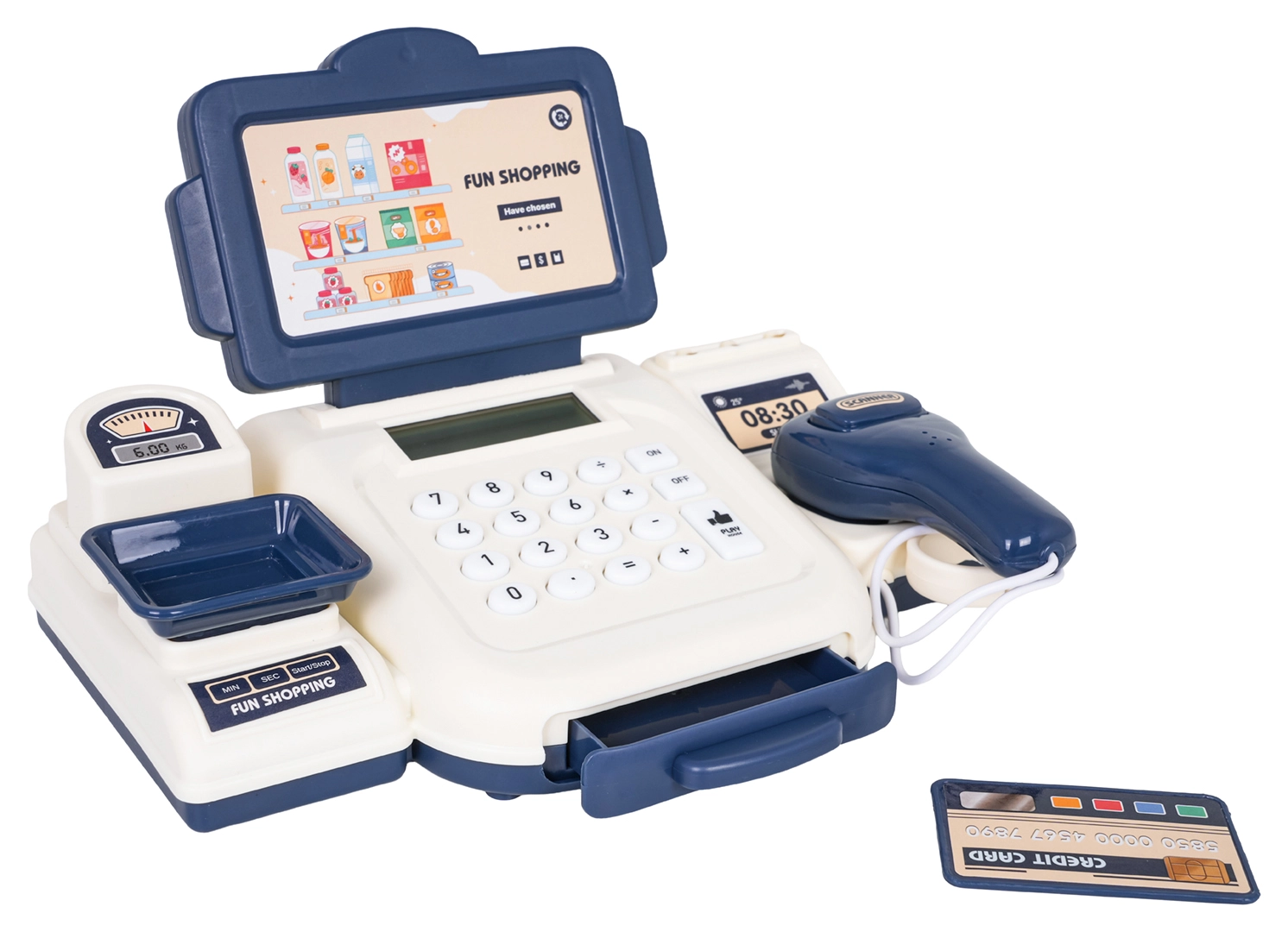 Igranje trgovine nikada nije bilo zabavnije! Ova dječja blagajna u plavo-krem izvedbi nudi funkcionalan kalkulator, skener sa svjetlom i zvukom, vagu i ladicu za novac koja se otvara. U pakiranju se nalaze i platna kartica te papirnate novčanice, tako da mali prodavači mogu vježbati računanje i bezgotovinsko plaćanje.