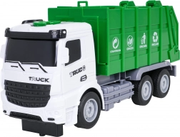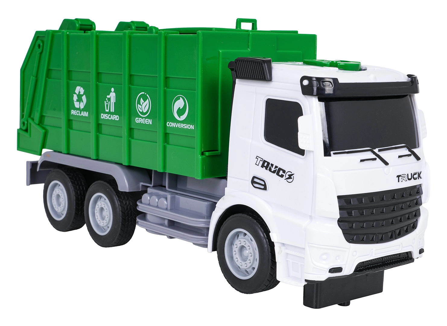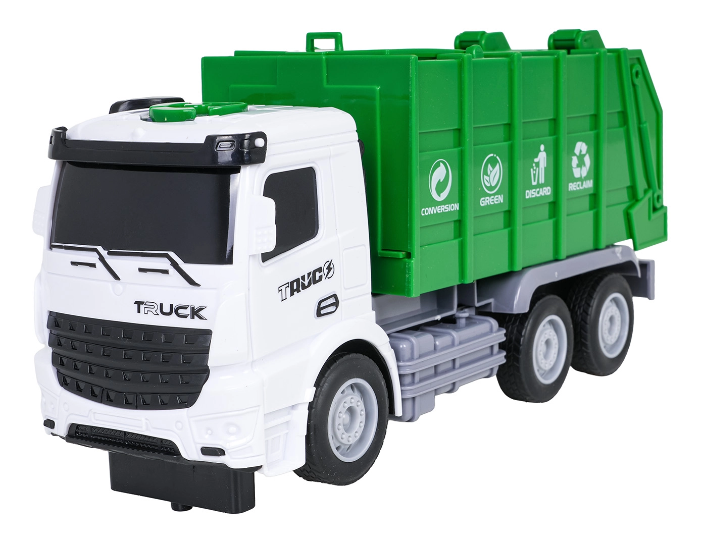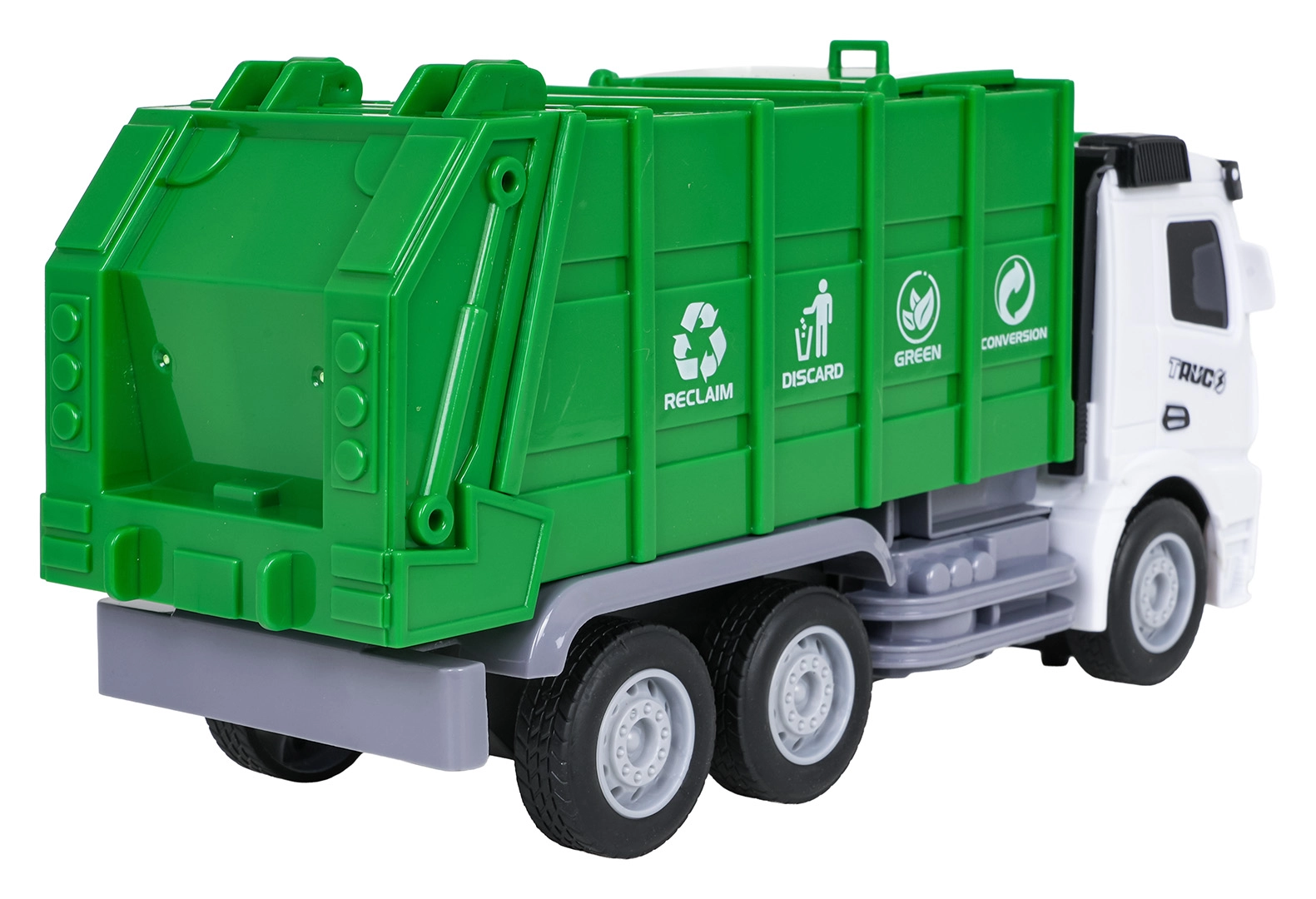 Ovo realističko smetlarsko vozilo oduševit će svakog malog ljubitelja radnih strojeva. Robusna konstrukcija, pažnja na detalje i gumene gume omogućuju glatku i dinamičnu vožnju po raznim podlogama. Na krovu kabine nalazi se upravljačka ploča koja pokreće zvukove paljenja, vožnje, vožnje unatrag te energičnu melodiju, popraćene trepćućim svjetlima.