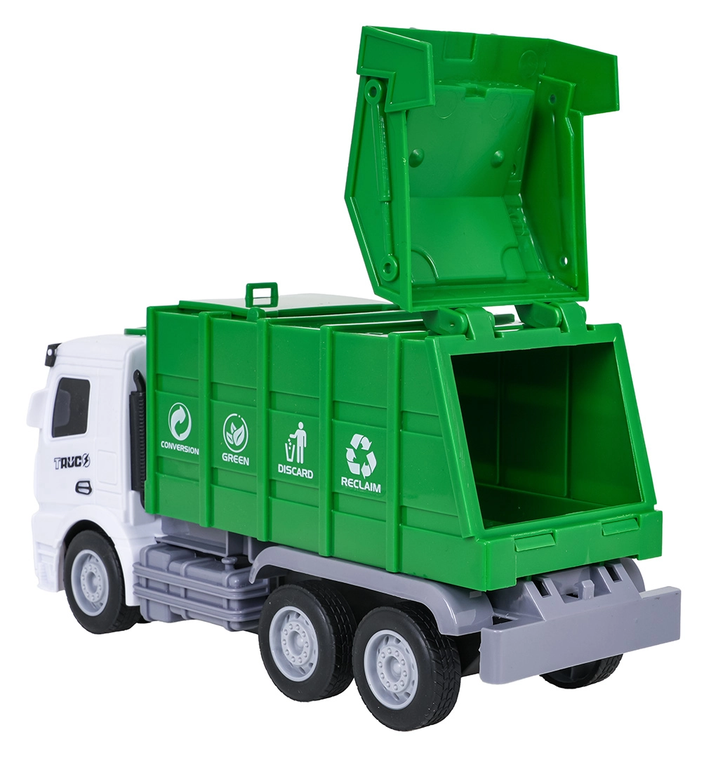 Za još autentičniji doživljaj vozilo ima otvarajući stražnji poklopac i gornji usipni prozor za jednostavno “utovarivanje otpada”. Igra potiče maštu, finu motoriku i učenje principa razvrstavanja i recikliranja.