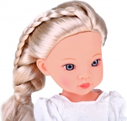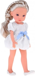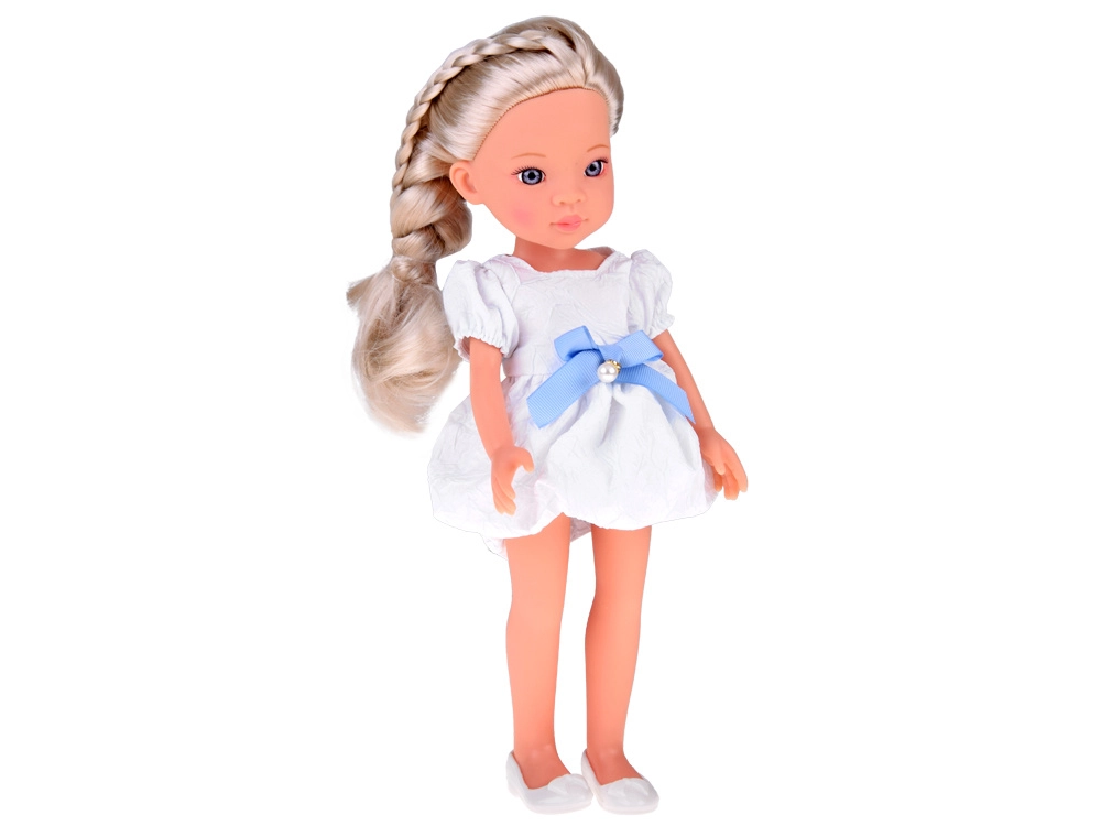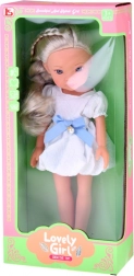 Slatka lutka Lovely Girl s dugom plavom kosom u pletenici očarat će svako dijete. Ima pokretne udove, realistične oči i lice i odjevena je u bijelu haljinu s plavom mašnom i bisernim detaljem. Zahvaljujući kvalitetnoj plastici i kosii koja se lako češlja idealna je za igru pretvaranja, presvlačenje i stiliziranje frizura.