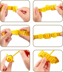 Elastična traka s držačem i magnetskom pčelicom može se nositi na glavi ili držati u ruci. Cvjetna baza i zdjelice održavaju igru preglednom i dinamičnom.