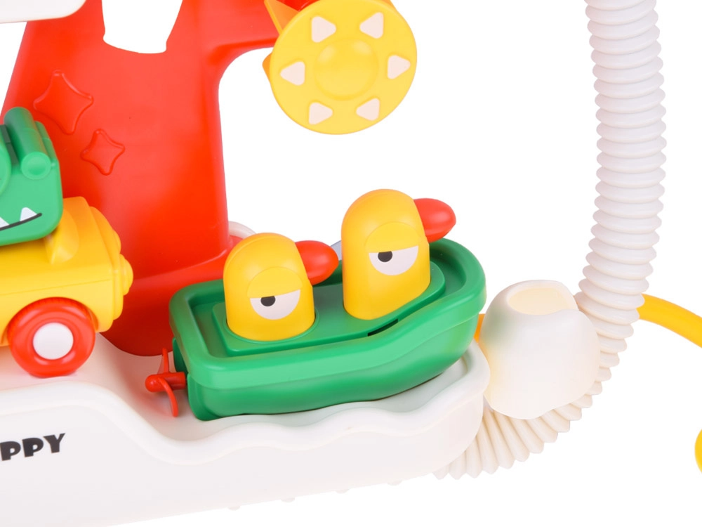 Preslatka stanica za kupanje s krokodilom donosi djeci beskrajnu dozu vodene zabave. Električna pumpa kruži vodu i stvara efekt neprekidne šprice, koja zavrti kotačiće i aktivira razne vodene efekte. U kompletu su i plutajući pačići u brodiću, autić s krokodilom te šalica za lijevanje.