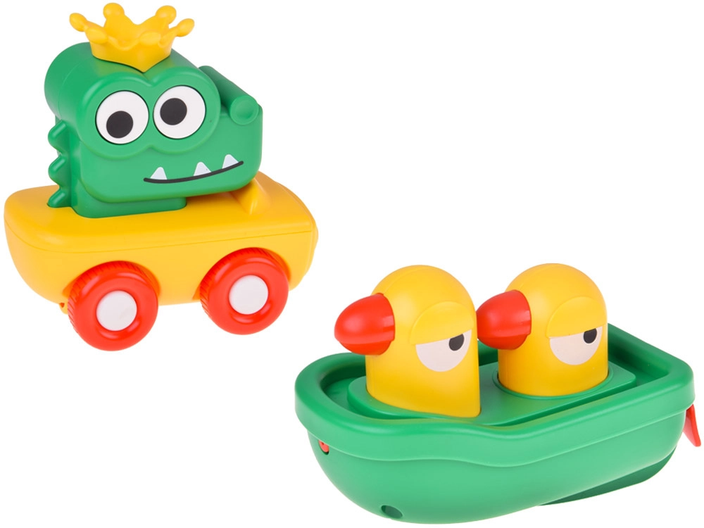 U kompletu su krokodil u autiću, brodić s dva pačića i posudica za lijevanje. Plutajući elementi potiču maštu i produžuju razigrano vrijeme u kadi.