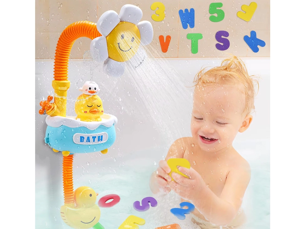 Pretvorite svakodnevno kupanje u zabavu s preslatkom kupaćom igračkom s prskalicom! Električna pumpica usisava vodu i kroz fleksibilno crijevo vodi je do cvjetne glave koja stvara nježan, siguran mlaz. Zahvaljujući vakuumskim čašicama igračku lako pričvrstite na kadu ili pločice, a 360° rotacijsko podešavanje olakšava usmjeravanje vode. Zamjenjivi nastavci s motivima pačića, oblaka i krune donose mnoštvo vodenih efekata.