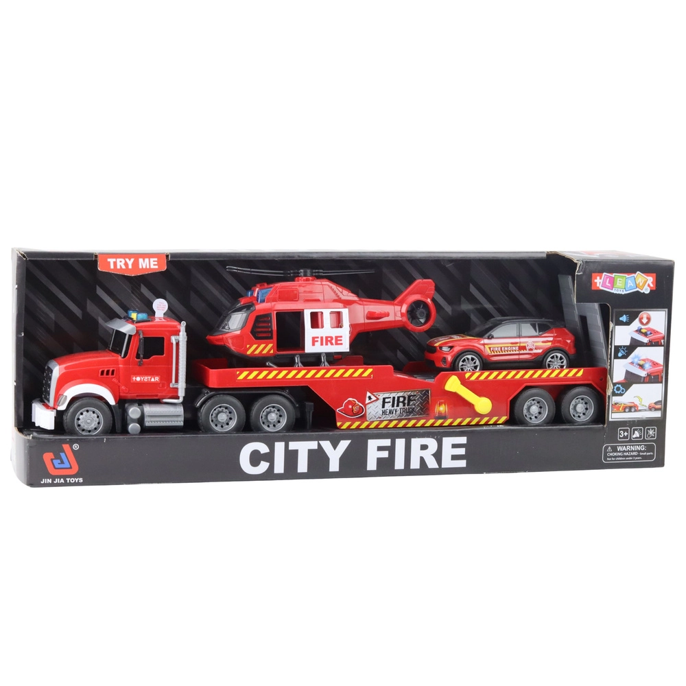 - 3 vozila u jednom setu – tegljač s prikolicom, vatrogasno vozilo, helikopter