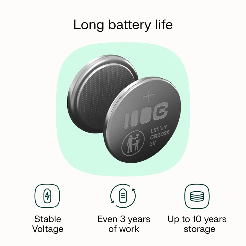 Učinkovita litijska baterija CR2025 pruža stabilan izvor energije sa stvarnim kapacitetom od 160 mAh i naponom 3 V. U odnosu na uobičajene alkalne baterije nudi i do 3× duži rad te je spremna za trenutno korištenje nakon vađenja iz blistera.