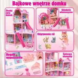 Otkrijte prekrasnu, trokatnu kućicu za lutke u ružičastim tonovima s terasom, toboganom i bogatom opremom. Set sadrži 296 dijelova, uključujući stilske dodatke i namještaj, a tu je i lutka. Za večernju atmosferu brine se noćna rasvjeta koja igri daje poseban čar. Idealna igračka za razvoj kreativnosti, mašte i fine motorike.