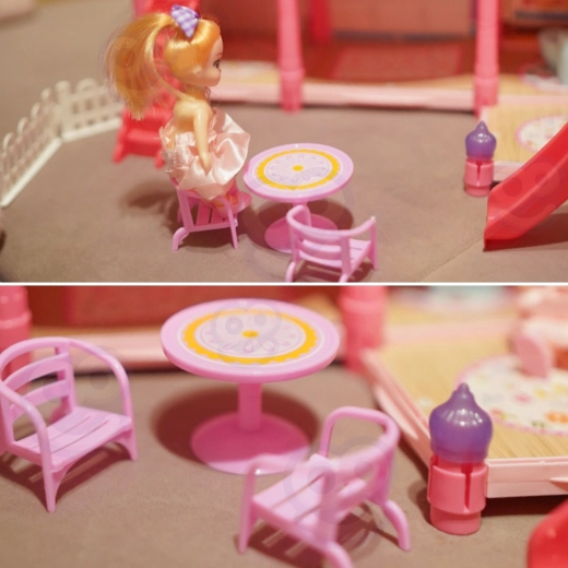 Dio seta je vrt s toboganom, stepenicama i terasom, koji proširuju mogućnosti igre i scenarija. Set je idealan za djecu od 3 godine i odlično razvija finu motoriku, koordinaciju oko–ruka te socijalne vještine u igri uloga s prijateljima.