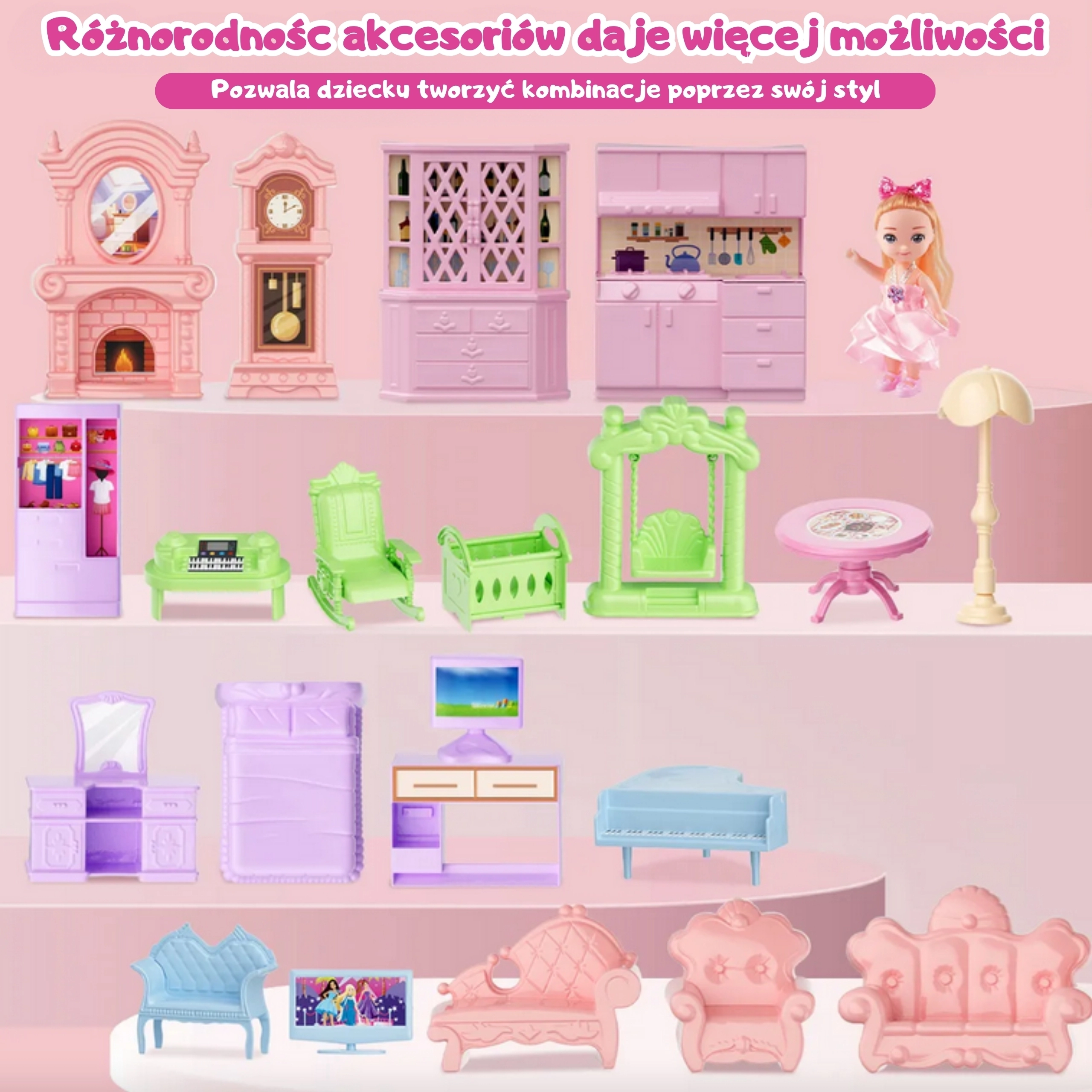 Dio seta je i bogata dodatna oprema – namještaj, dekoracije i figurice, pa djeca mogu interijer proizvoljno preuređivati i planirati. Sigurni materijali, zaobljeni rubovi i kvalitetna izrada osiguravaju bezbrižnu igru već od 3 godine.