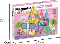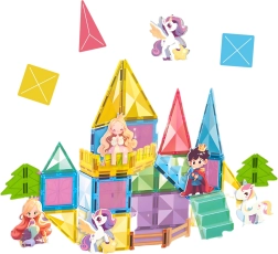 Otkrijte čaroliju stvaranja s magnetskim kockicama WOOPIE! Ovaj kreativni set s 55 šarenih dijelova omogućuje djeci izgradnju bajkovitog dvorca s figuricama princeze, princa i jednoroga. Snažni magneti osiguravaju lako spajanje, a igra potiče finu motoriku, maštu i prostorno razmišljanje.