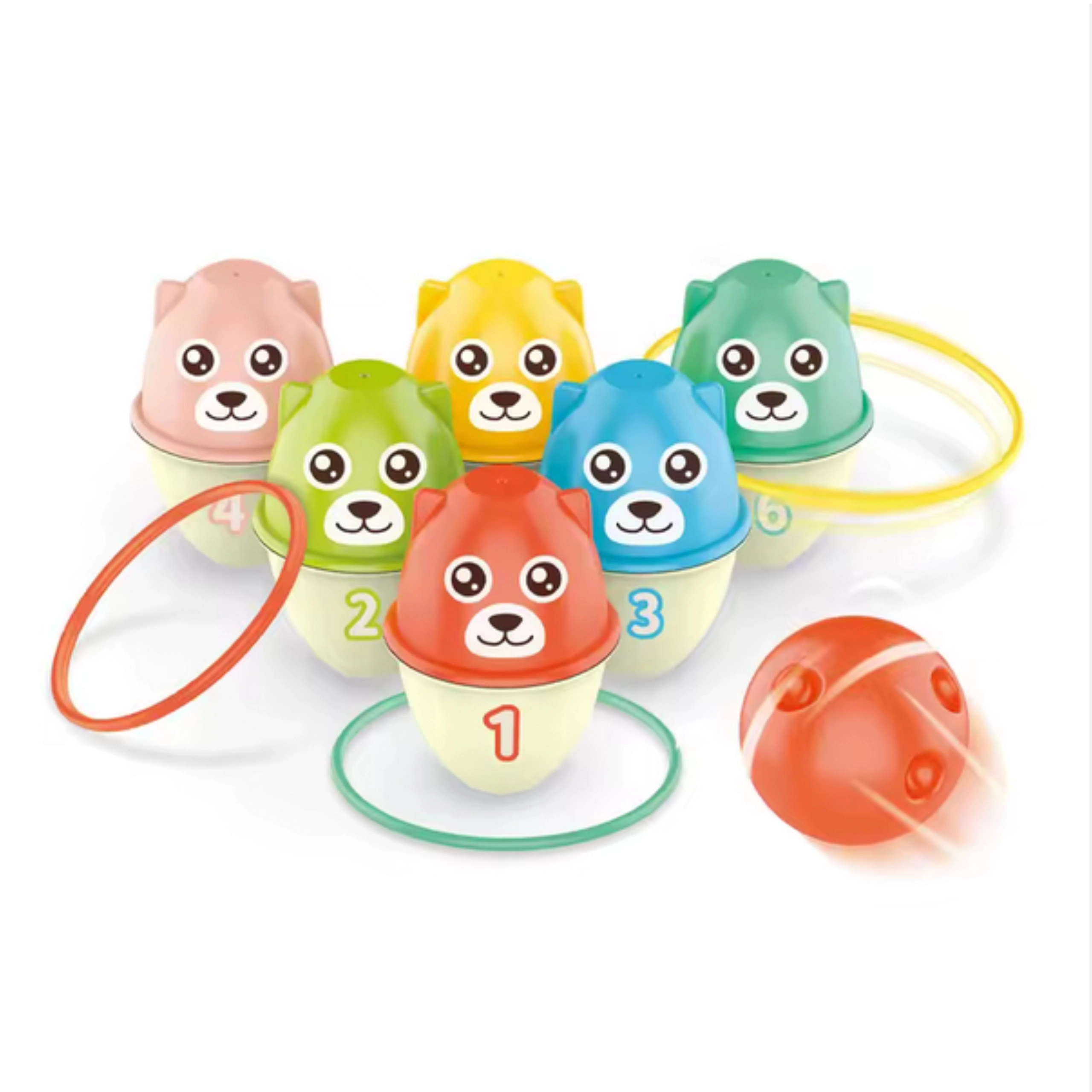 Set Woopie sa šarenim medvjedićima donosi djeci od 18 mjeseci sjajnu kombinaciju kretanja i učenja. Svaki medvjedić ima drugu boju i broj, pa djeca prirodno usvajaju prepoznavanje boja i brojki. Zahvaljujući različitim mogućnostima igre – bacanje lopticom, gađanje obručima ili slaganje tornja umetanje medvjedića jednog u drugoga – mali igrači se ne dosađuju i istovremeno razvijaju svoje vještine.