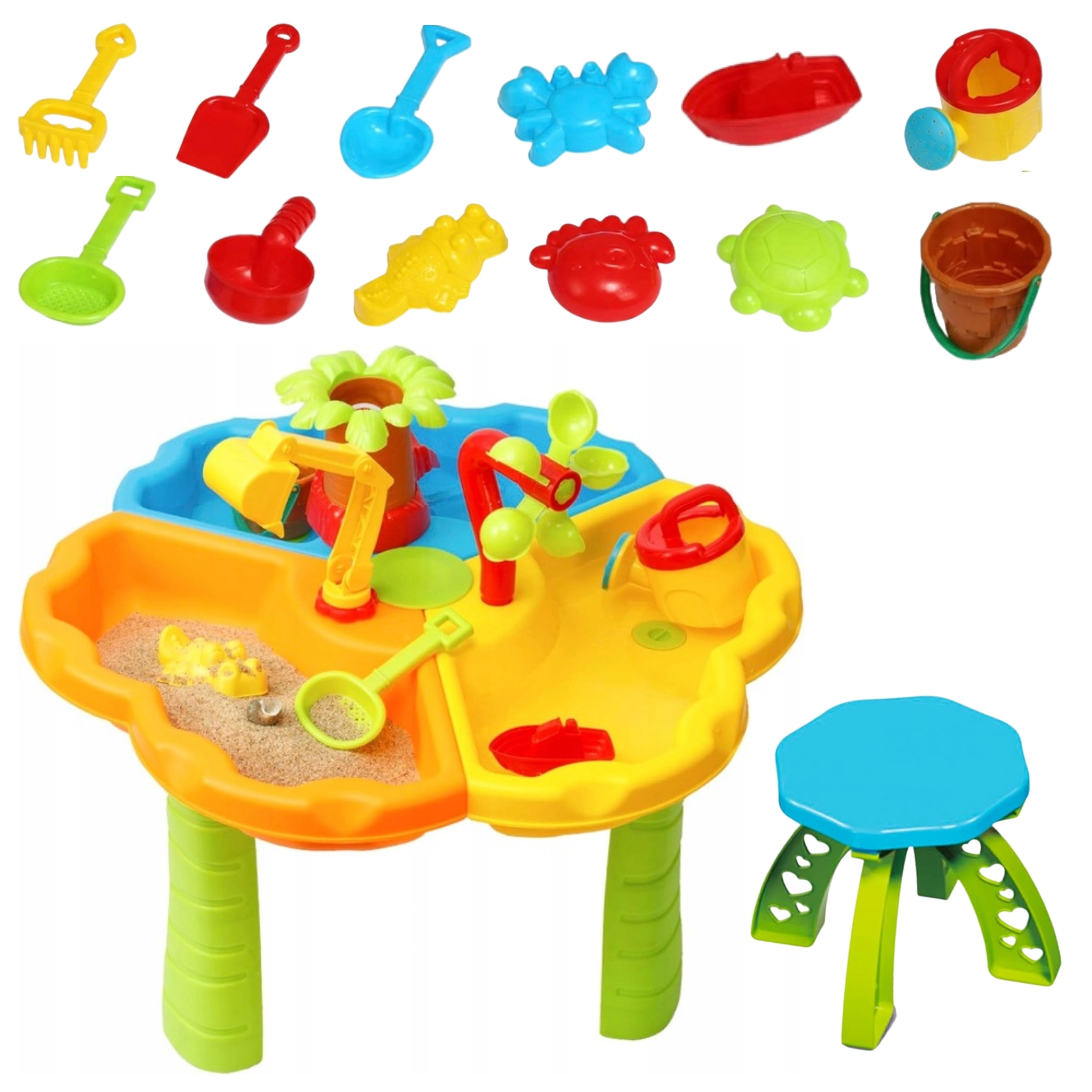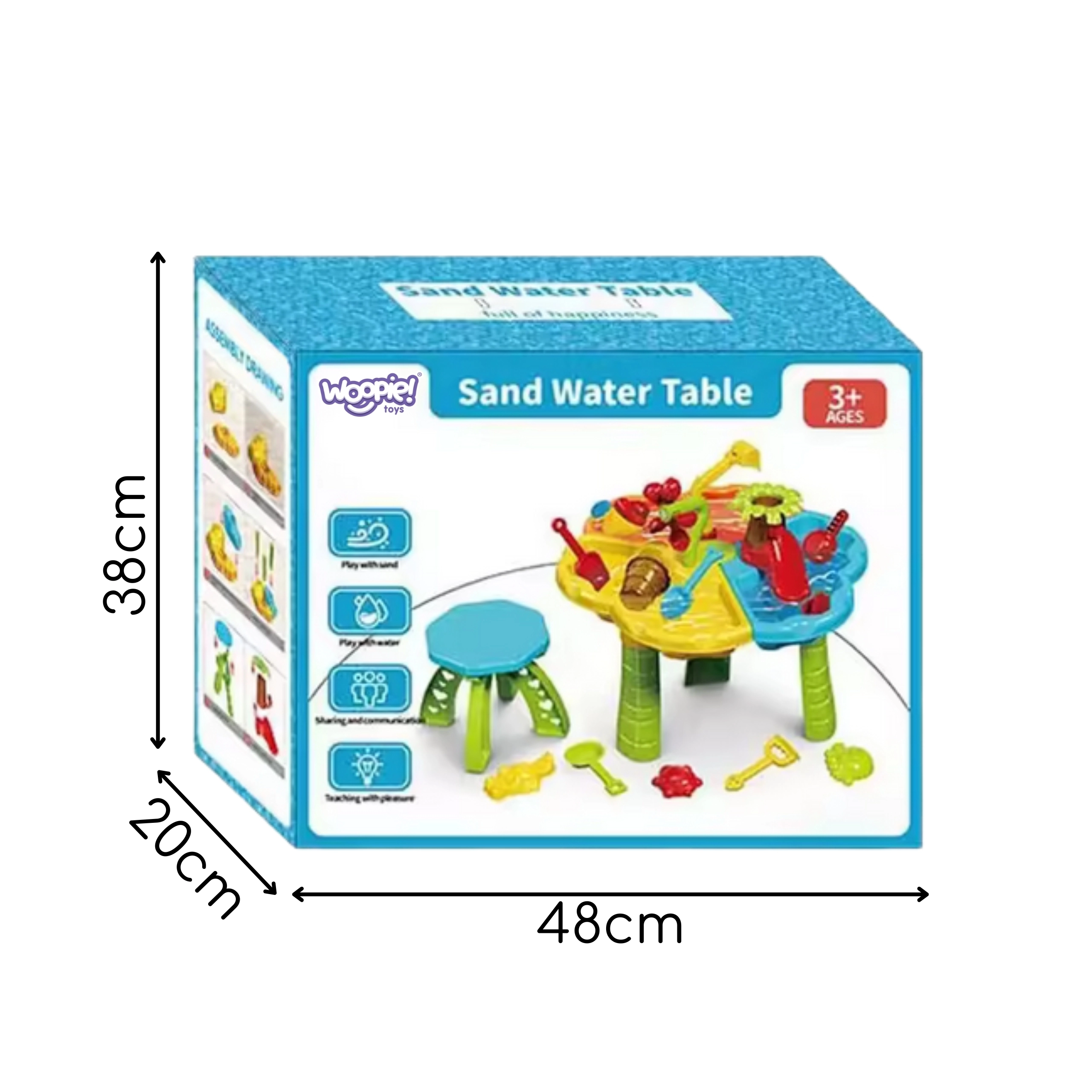 Igraći stol 2u1 za vodu i pijesak idealan je za vrt, balkon, terasu i dječju sobu. Trostruke kadice omogućuju istodobno eksperimentiranje s vodom, pijeskom i dodacima, pa djeca mogu graditi, prelijevati, prosijavati i otkrivati razne strukture. Ergonomski stolić osigurava udobnost i stabilnost tijekom igre.