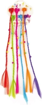 Razvedrite frizuru vaše male modne ikone uz set ukosnica i štipaljki s obojenim pletenicama. Pramenovi dugi cca 30 cm lako se pričvršćuju i u trenu stvaraju razigran, šareni efekt. Idealan izbor za svakodnevno nošenje i kao dodatak kostimu za karneval. U pakiranju se nalazi 6 kom s ukrasima u obliku cvjetića.