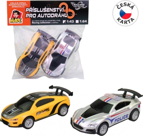 Ovaj set donosi dva zamjenska modela automobila koja savršeno pristaju autodromima u mjerilu 1:43 iz linije Racing Collection. Zahvaljujući izdržljivoj plastičnoj izradi, prikladni su za svakodnevnu zabavu u utrkivanju i brze zamjene tijekom igre.
