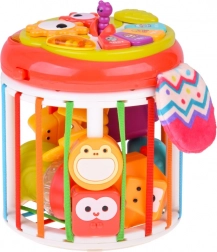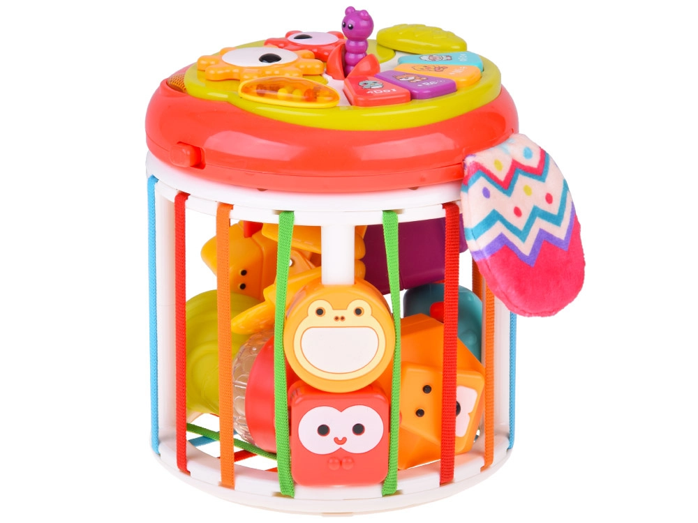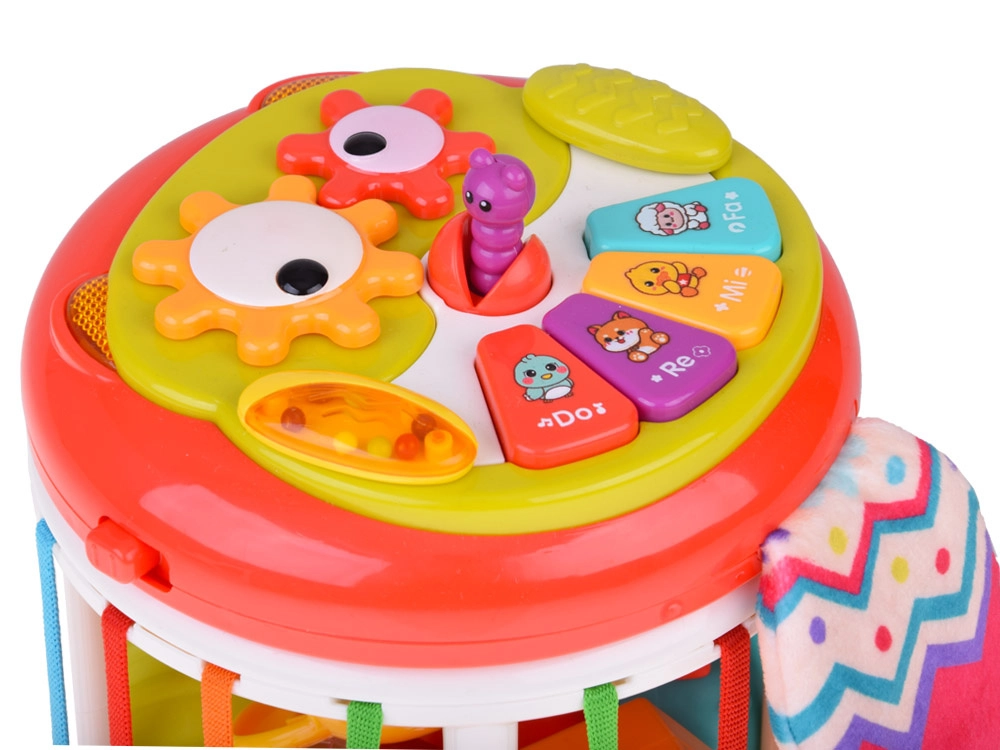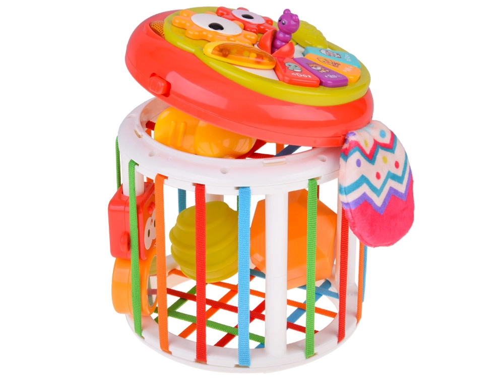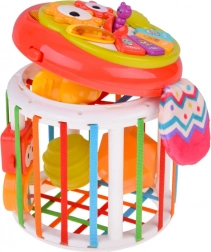 Slatka i šarena interaktivna sova 2-u-1 spaja elektroničku glazbenu igračku i pametni sorter. Djecu osvajaju svjetla, zvukovi i melodije, tipke sa životinjama i tonovima do–re–mi–fa, kao i bogati taktilni podražaji. Odvojiva „glava” sove idealna je za putovanja, dok šareni valjak–sorter s elastičnim gumicama i oblicima potiče finu motoriku, koordinaciju ruka–oko i prepoznavanje oblika i boja.