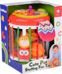 Interaktivna sova 2-u-1 nudi dvije igre u jednoj: elektronički dio s tipkama životinja i tonova te samostalni šareni sorter. Nakon uključivanja reproducira uvodnu melodiju, a pojedine tipke aktiviraju nazive tonova, zvukove životinja, kratke instrumentalne melodije i vesele pjesmice. Djecu će oduševiti rotirajuće oči, pokretna krilca s kuglicama, mekani šuškavi rep i potezni „crvić” na gumici.