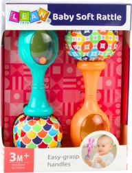 Ovaj par zvečka osmišljen je za sigurnu i radosnu stimulaciju osjetila. Unutarnje šarene kuglice pri kretanju stvaraju ugodan, nenametljiv zvuk koji umiruje djecu i motivira na aktivnost. Ručka bez BPA je glatka, izdržljiva i prikladna i za razdoblje nicanja zubića.