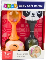 Ovaj set zvečki osmišljen je da prirodno potiče znatiželju i osjetilnu percepciju dojenčadi. Zahvaljujući ergonomskom obliku lako ga drže i najmanja djeca, lagana konstrukcija ne zamara ruke, a tekstilne površine mame na dodir. Veseli motivi majmunčića i pande te intenzivne boje ohrabruju djecu na istraživanje i prvu interaktivnu igru.