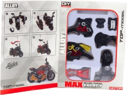 - dijelovi za sastavljanje motocikla, upute za montažu, poklon pakiranje