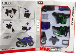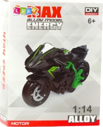 Otkrijte radost konstruiranja sa stilskim DIY modelom motocikla u mjerilu 1:14. Dijelovi od metala i kvalitetne plastike jamče čvrstu i izdržljivu konstrukciju, dok izražajna zeleno‑plava kombinacija gotovom modelu daje sportski izgled. Nakon sastavljanja motor je izvrsan i za igru i kao dekoracija za sobu.