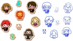 - 9 oblikovanih drvenih žigova s omiljenim HARRY POTTER motivima za beskrajno stvaranje.