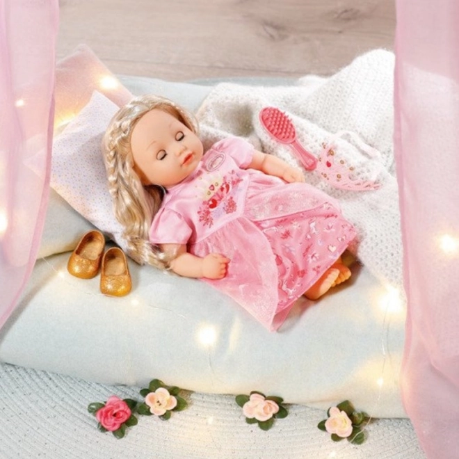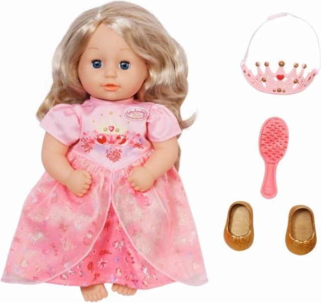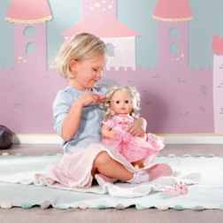 Lutka Baby Annabell Mala Slatka Princeza stvorena je za male princeze sklone mašti. Kada je poljubite, odgovara zvukovima poljupca i njezini obrazi pocrvene. Uz to, zatvara svoje sjajne plave oči. S njezinom kvalitetnom kosom i vlastitom četkom za kosu možete stvarati prekrasne frizure. Mekano tijelo ove lutke idealno je za maženje i odmaranje nakon velikog dana punog igara.