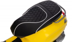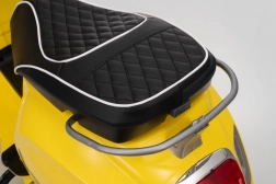 Integrirani audio panel s MP3, Bluetooth i AUX reproducira omiljene pjesme, a na upravljaču su tipke za zvukove i trubu. Jarka LED svjetla sprijeda i straga povećavaju vidljivost i daju autentičan izgled prave VESPE.