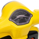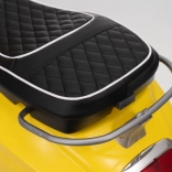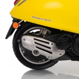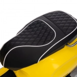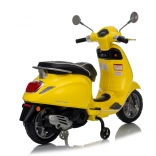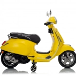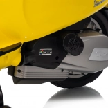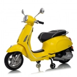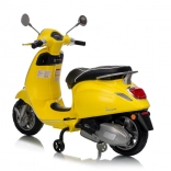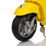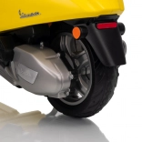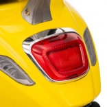 Stilisan dječji električni skuter VESPA ROMA u živopisnoj žutoj boji nudi djeci sigurnu zabavu i prve vozačke doživljaje. Zahvaljujući dvama motorima 2×35 W, bateriji 12 V 7 Ah, mekanim EVA kotačima i glatkom pokretanju vožnja je udobna i stabilna. Ne nedostaju LED svjetla sprijeda i straga, audio panel s MP3/Bluetooth/AUX, pokazivač napunjenosti i udobno sjedalo od eko-kože. Sjajan izbor za male vozače.