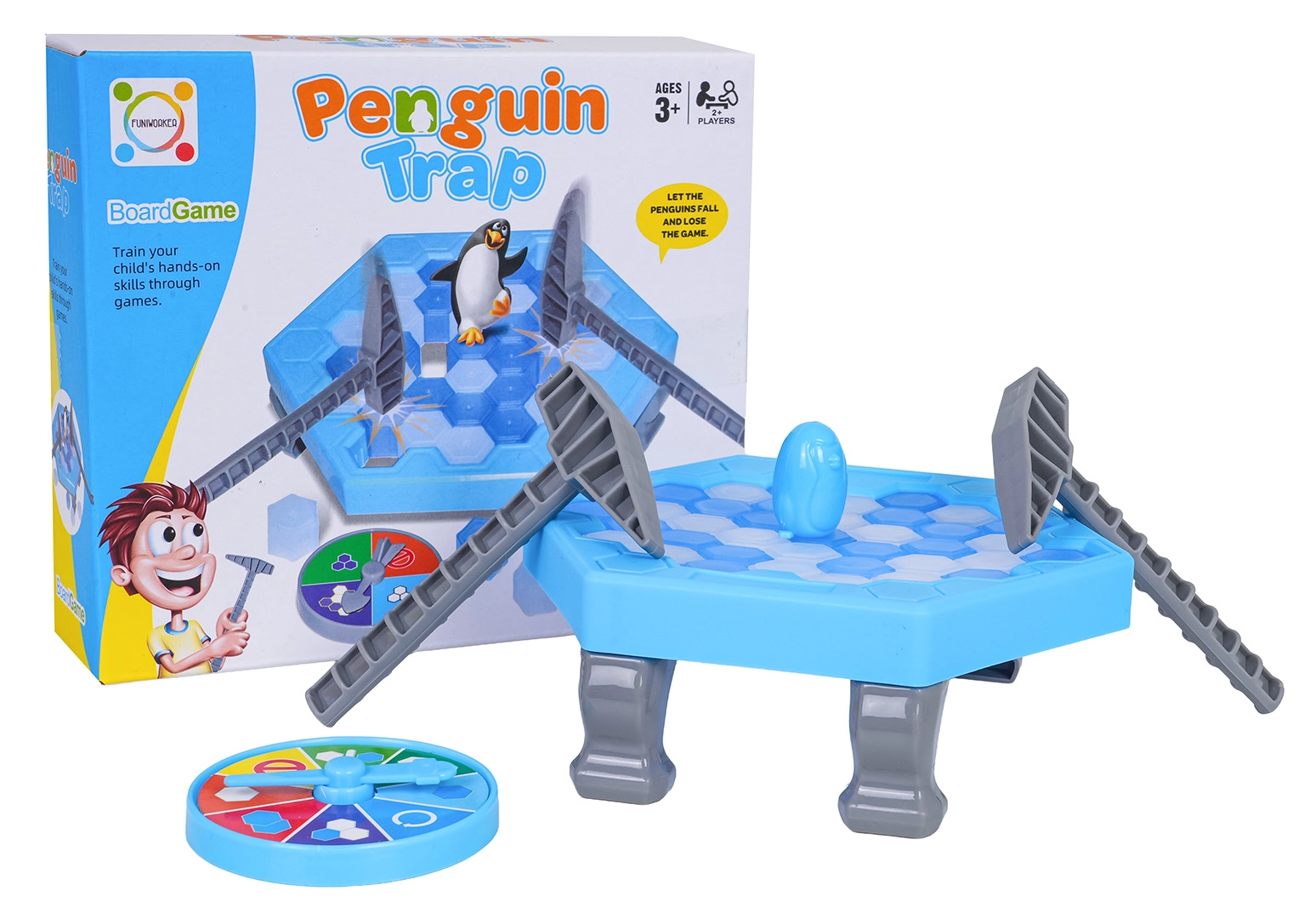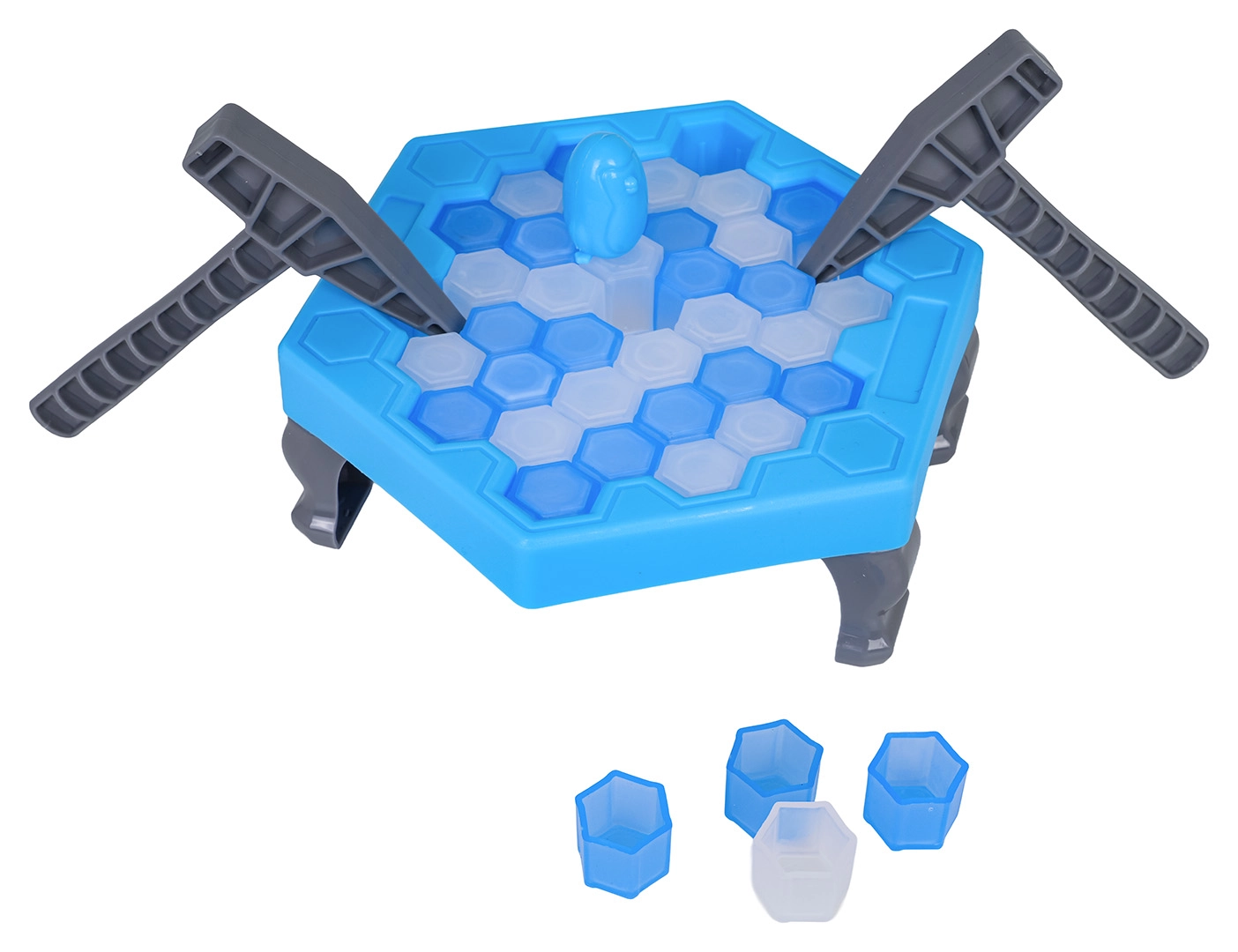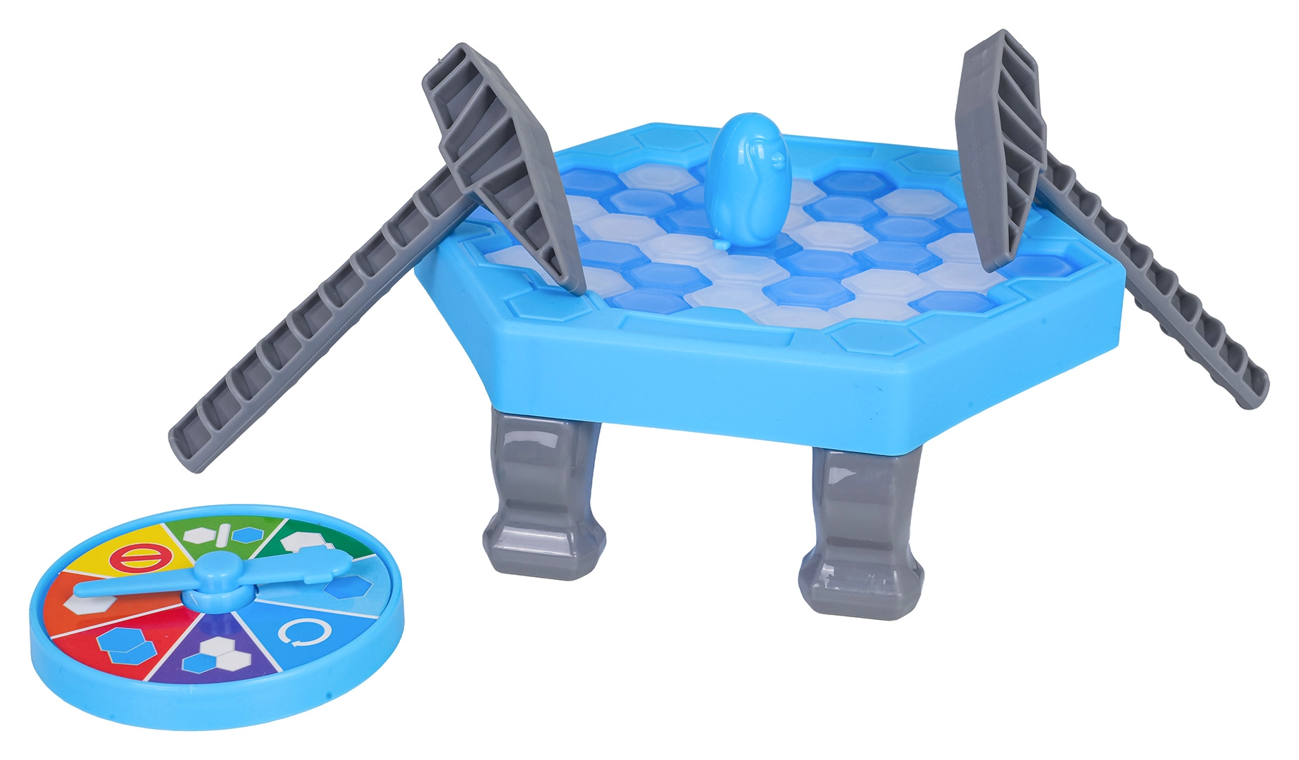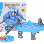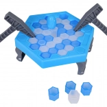 Pingvin na ledu je zarazna vještinska igra za male i velike. Na šesterokutnoj ledenoj površini postupno izbijate ledene dijelove pomoću čekića prema rezultatu na okretnom kotaču. Tko uzrokuje da pingvin padne, gubi – napetost raste sa svakim potezom!