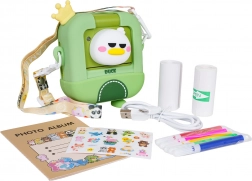 Razveselite male fotografe dječjim fotoaparatom koji nakon snimanja odmah ispisuje na termopapir. U paketu je bogat set dodataka za kreativnu zabavu: zaštitna futrola, 2 role termopapira, USB kabel, uzica, fotoalbum, naljepnice i šarene flomastere, zahvaljujući kojima se izrađene crno-bijele fotografije mogu obojiti. Fotoaparat nudi snimanje videozapisa, zabavne efekte i pohranu na karticu (utor za karticu), pa je idealan kao poklon za djecu od 3 godine.