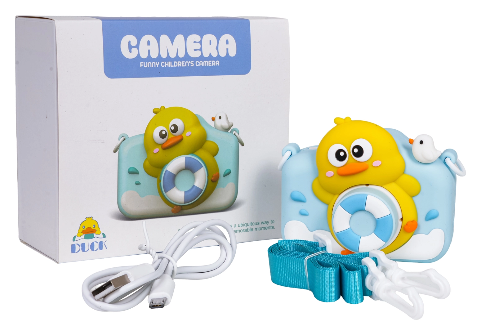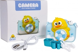 Slatka dječja kamera s motivom patkice donosi djeci zabavu i kreativnost. Snima fotografije i videozapise, ima 1080p kameru, u boji LCD zaslon, zabavne filtre i okvire te u memoriji 5 igara. U paketu je zaštitna gumena futrola, trakica za vrat i USB kabel za punjenje. Ugrađena baterija 5 V / 1000 mAh osigurava mnogo trenutaka punih fotografija i videa.