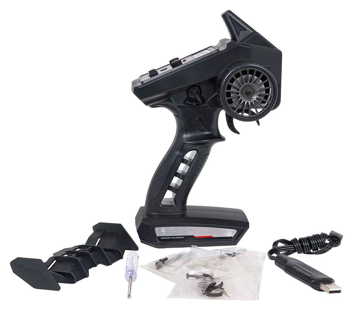 Upravljanje na frekvenciji 2,4 GHz osigurava pouzdan domet bez smetnji, vozilo se glatko kreće u svim smjerovima, a zahvaljujući velikim gumenim gumama s visokim prianjanjem drži putanju i u brzim dionicama. Napajanje osigurava Li‑ion baterija 7,4 V 1300 mAh (u pakiranju), upravljač zahtijeva 3× AA 1,5 V (nisu uključene).