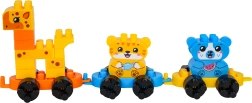Sastavite žirafu, tigra i medvjedića na pokretnim podvozjima i spojite ih u šareni vlakić za još više zabave.