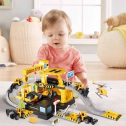 Set sadrži 41 element, uključujući 3 metalna građevinska autića (nasumični modeli) i helikopter, pa djeca mogu stvarati vlastite scenarije i igrati se samostalno ili s prijateljima. Izdržljiva plastična konstrukcija i žive boje osiguravaju sigurnu i privlačnu igru za djecu od 3 godine.