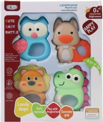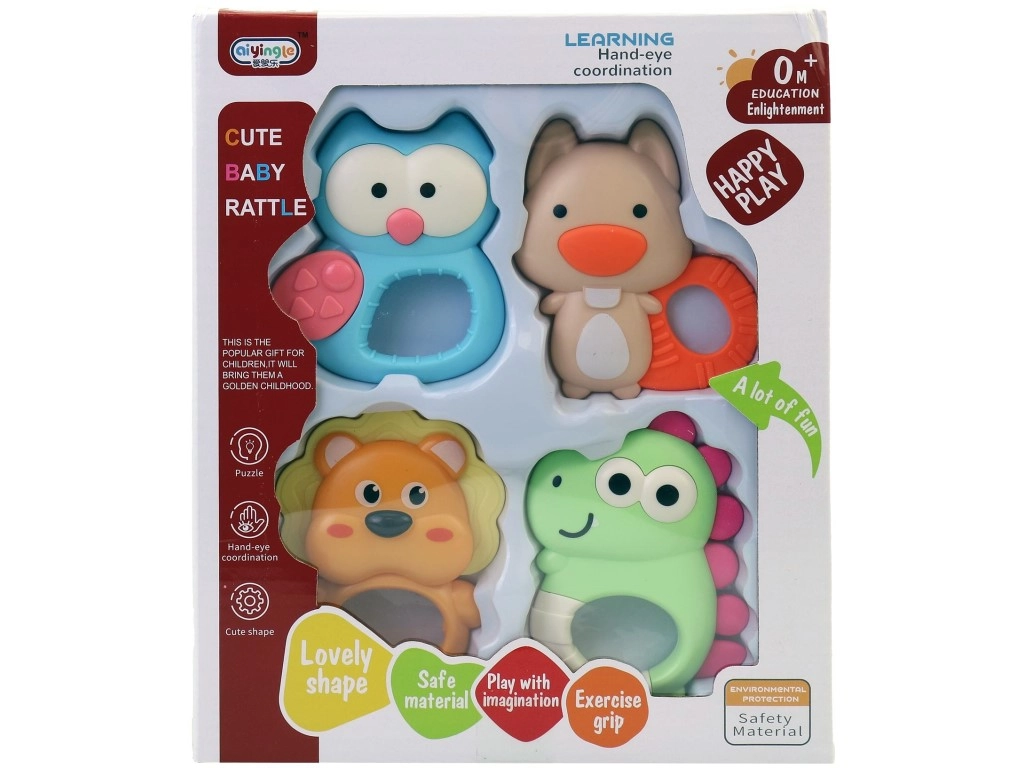 Idealno kao poklon za novorođenče te kao praktičan dodatak za kolica, krevetić ili putovanja. Set od 4 komada omogućuje da je zvečka uvijek pri ruci i da se boje ili oblici mijenjaju prema raspoloženju djeteta.