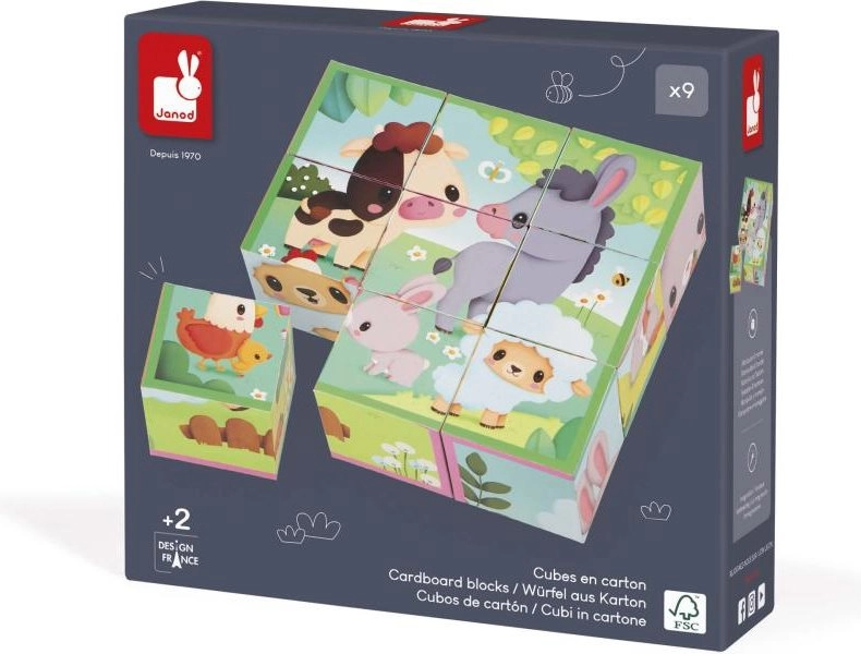 Otkrijte čaroliju slaganja s drvenim setom JANOD – 9 čvrstih kocaka od kojih možete složiti čak 6 simpatičnih farmarskih slika. Savršeno za najmlađe i predškolce: razvija finu motoriku, koordinaciju oko–ruka, logičko razmišljanje i maštu te potiče na prepričavanje priča.