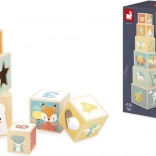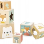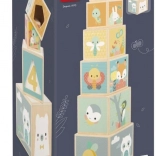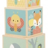 Glatke drvene kocake s preslatkim životinjama i nježnim bojama mame na igru i izdržavaju svakodnevnu upotrebu.