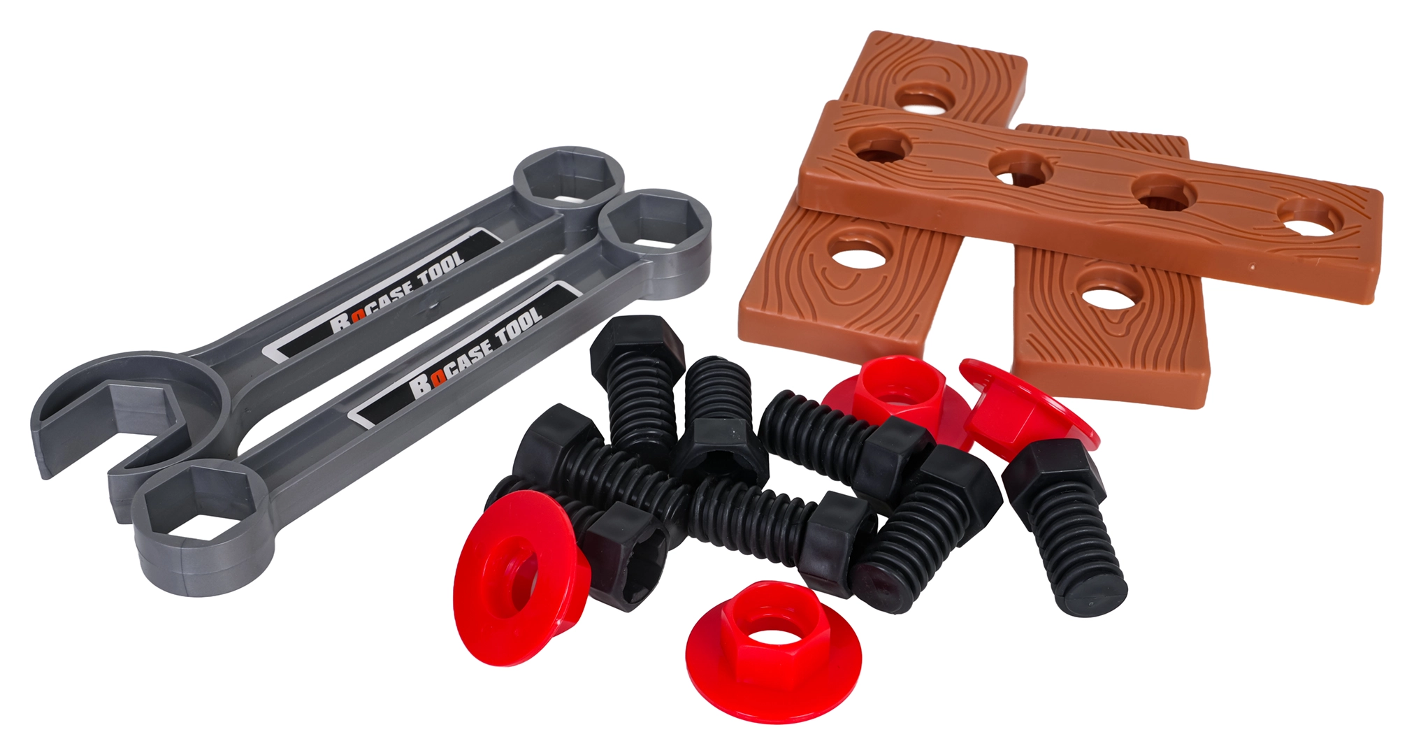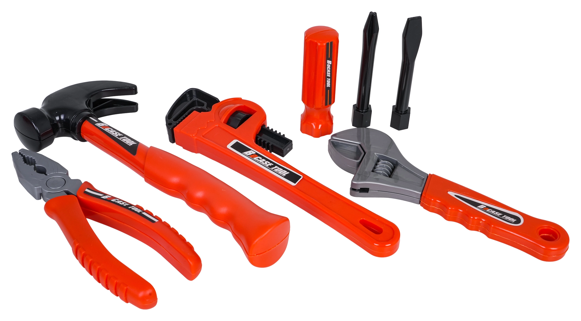 Čekić, kliješta, francuski ključ, odvijač s bitovima i papagajke izgledaju kao pravi, ali su lagani i sigurni za dječje ruke.