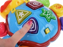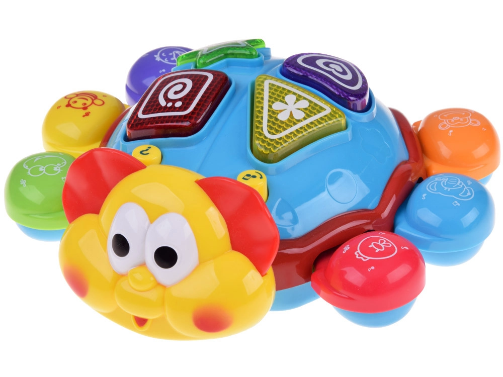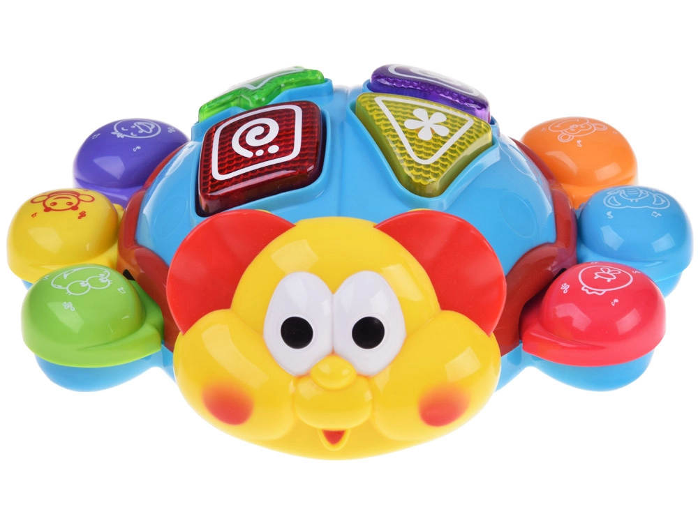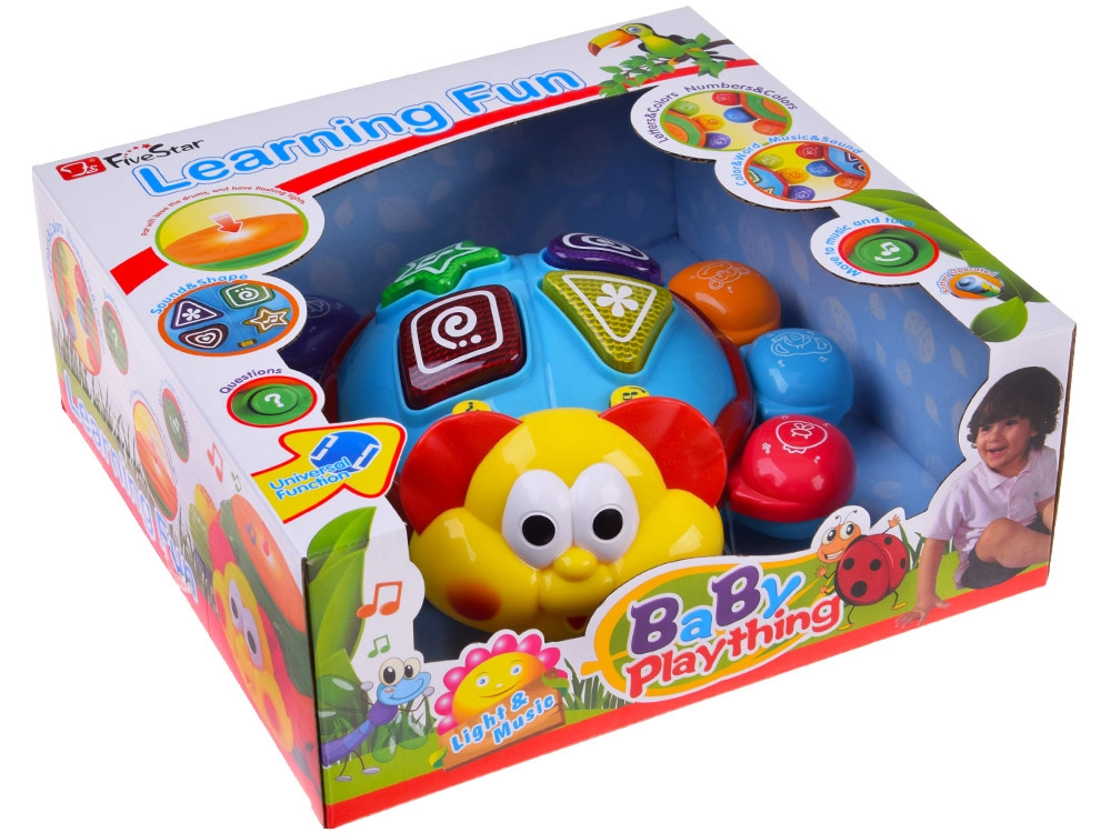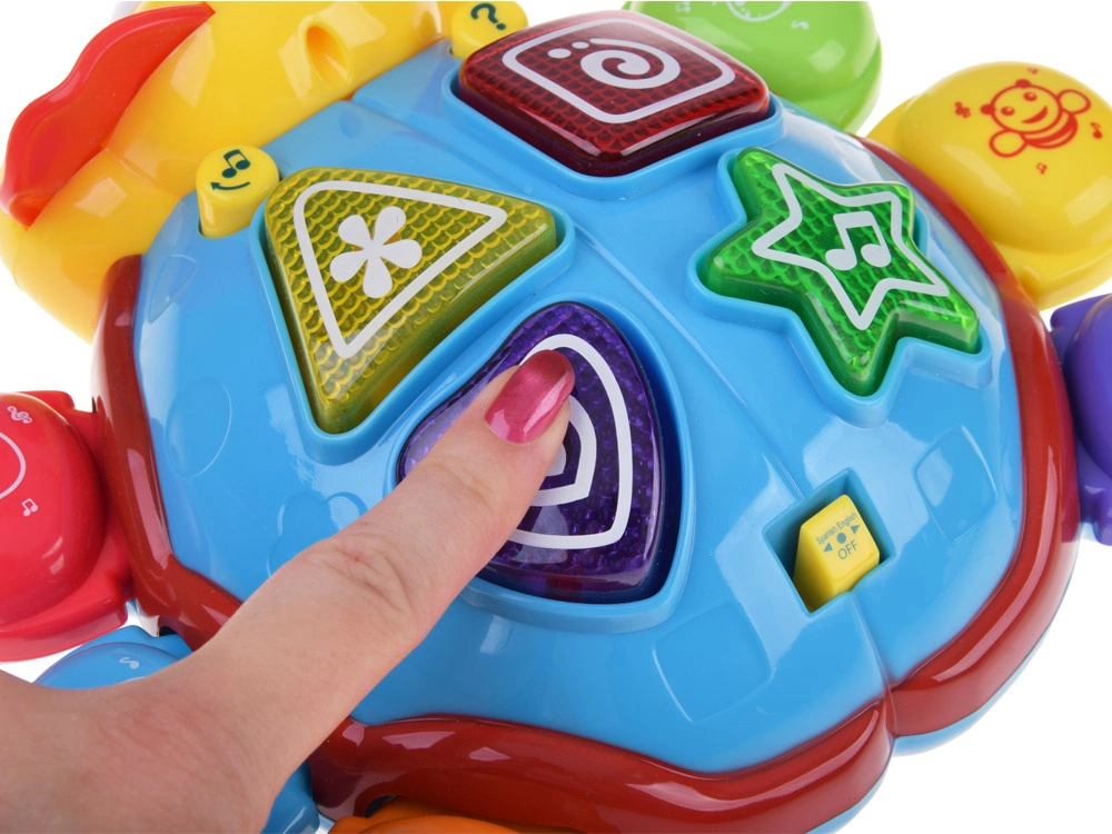 Šareni interaktivni kukac potiče djecu na puzanje i kretanje, svira vesele melodije, bljeska svjetlima i zahvaljujući pametnom senzoru prepreka mijenja smjer. Pritiskom velikih tipki djeca uče boje, životinje i princip uzrok–posljedica. Idealna igračka za aktivnu zabavu i razvoj fine motorike.